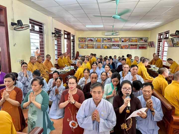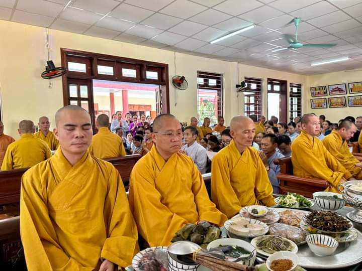 Tại đây, Thượng tọa Thích Hạnh Nhẫn - UVTT BTS GHPGVN tỉnh, Phó trưởng Ban Thường trực BTS GHPGVN tỉnh, Chánh Duy na đãi lao chư Tăng hiện tiền tán thán phước sự thù thắng, đồng hoan hỷ thọ nhận lễ phẩm. Đại chúng nhất tâm niệm Phật hồi hướng, ban rải năng lượng Phước lành đến khắp Pháp giới hiện sinh, nguyện những cảnh giới u linh đều nhờ công đức cúng dường này mà thấm nhuần Pháp lạc.