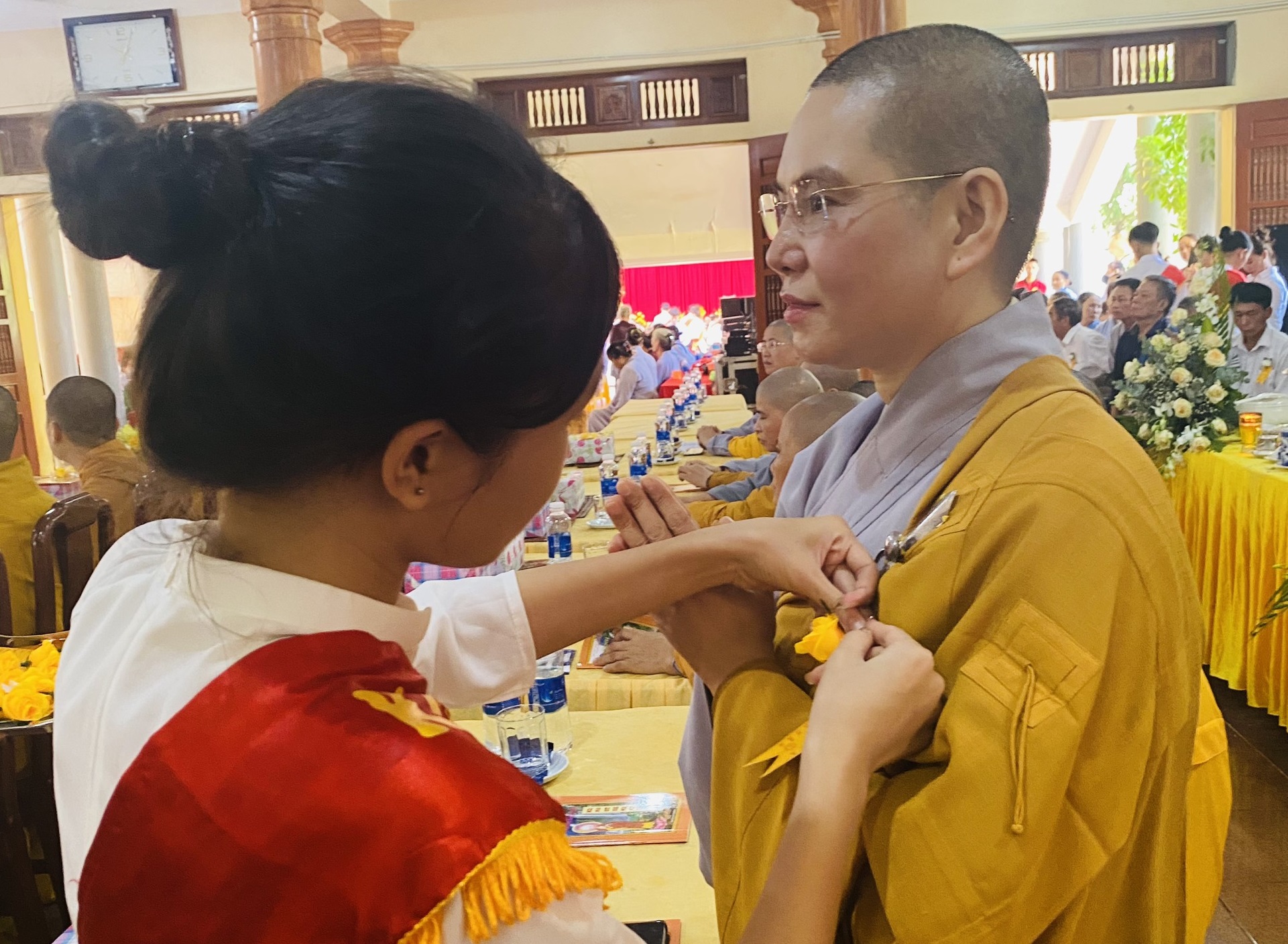 Trong không khí trang nghiêm lắng đọng tâm tư, thay mặt cho Hoà thượng Chứng minh cùng chư Tôn đức, TT.Thích Hạnh Nhẫn ban đạo từ cho buổi lễ về nguồn gốc cũng như ý nghĩa của ngày lễ Vu Lan báo hiếu và “Bông hồng cài áo”. Qua đó sách tấn hàng Phật tử cần noi theo gương Đức Phật, gương Tôn giả Mục Kiền Liên, luôn sống trong tinh thần tri ân và báo ân…