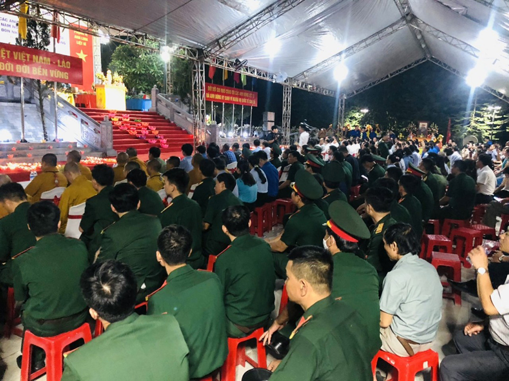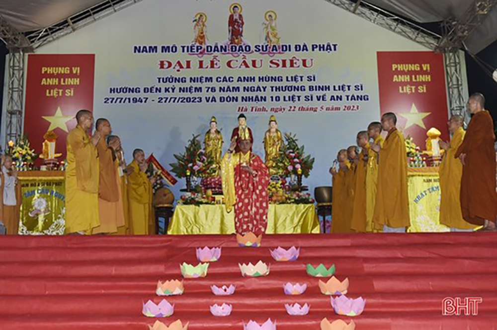 PSO - Hướng đến kỷ niệm 76 năm ngày Thương binh Liệt sĩ 27/7 và đón nhận 10 hài cốt liệt sỹ quân tình nguyện, chuyên gia Việt Nam hy sinh tại Lào được quy tập mùa khô năm 2022 - 2023. Tối ngày 22/5, tại nghĩa trang Quốc gia Liệt sỹ Nầm (xã Sơn Châu, huyện Hương Sơn) UBND tỉnh, Sở LĐTBXH tỉnh Hà Tĩnh, UBND huyện Hương Sơn phối hợp GHPGVN tỉnh Hà Tĩnh và GHPG huyện Hương Sơn tổ chức Đại lễ cầu siêu, tưởng niệm các Anh hùng liệt sỹ.