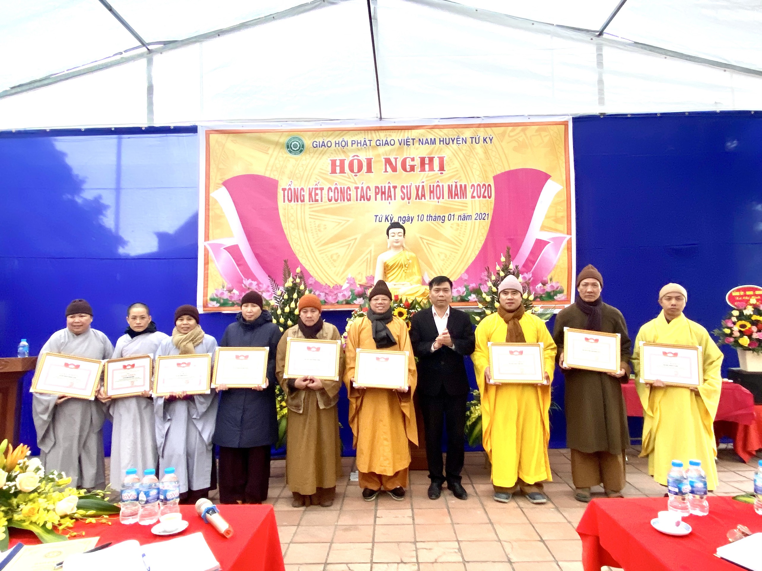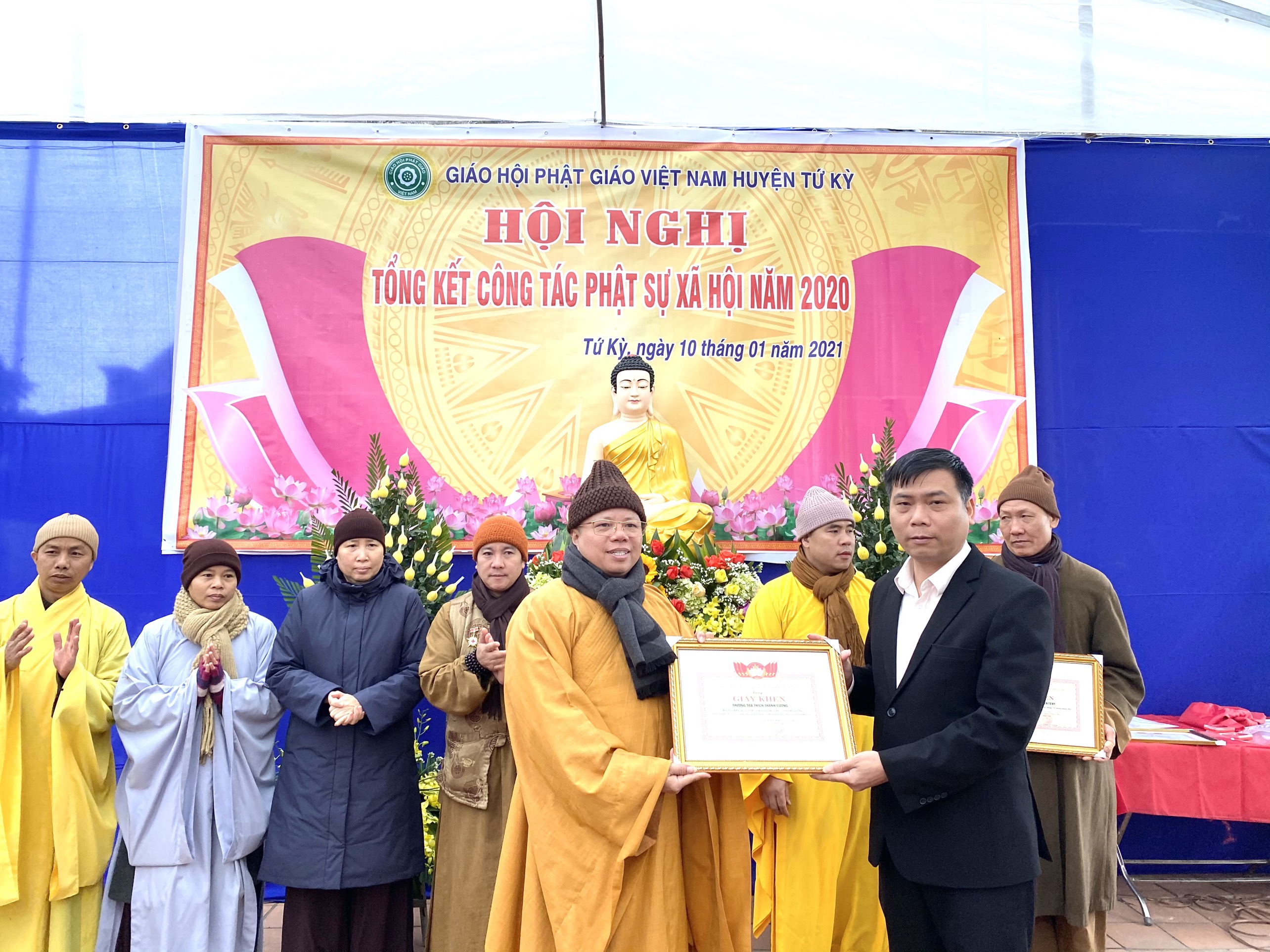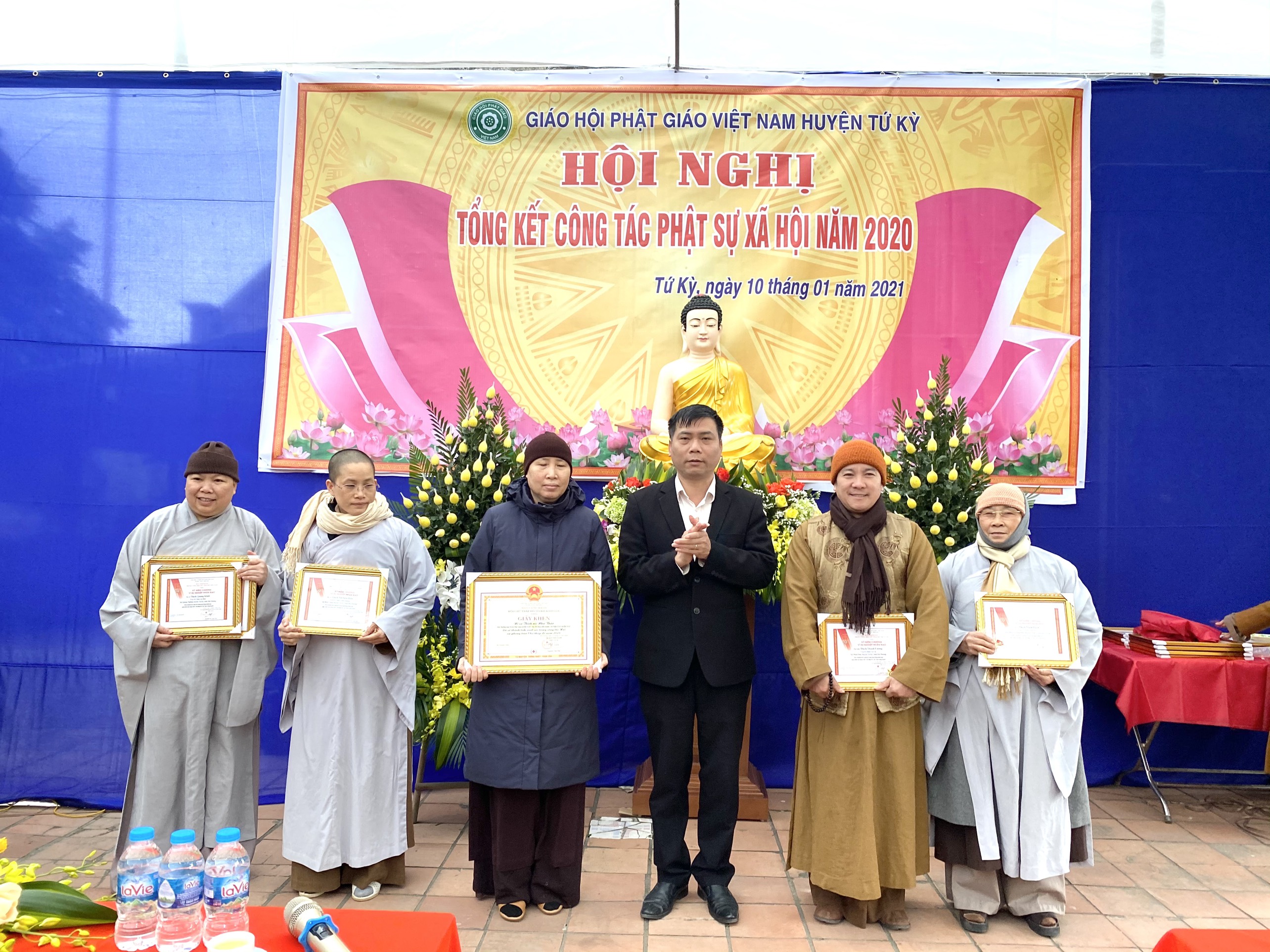Dịp này, Uỷ ban MTTQVN huyện Tứ Kỳ còn trao tặng bằng khen cho 1 tập thể và 7 cá nhân có thành tích xuất sắc trong công tác Phật sự năm 2020.