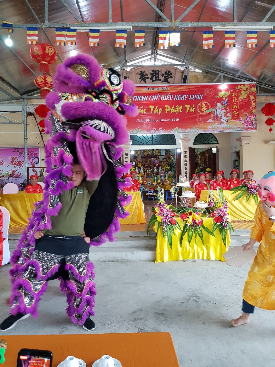 Sau lời phát biểu của ông Trưởng thôn là tiết mục múa lân chúc mừng Lễ mừng thọ.
