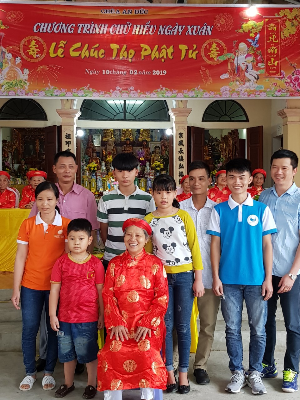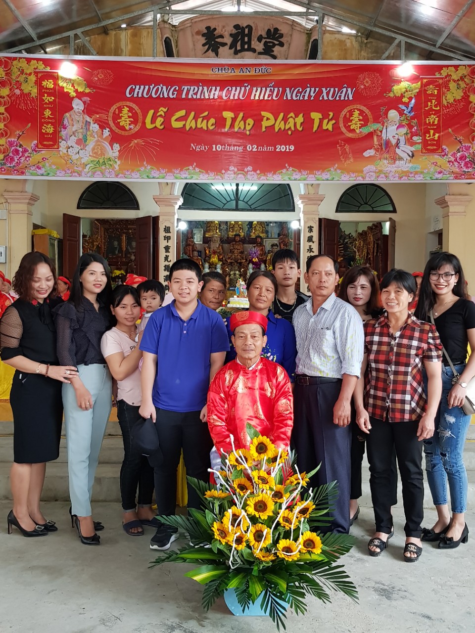 Hòa trong nắng ấm đón chào xuân Di Lặc đang hiện hữu trên quê hương Việt Nam, sáng ngày 10/2/2019 (nhằm mùng 6/1/ Kỷ Hợi) Sư thầy Thích Quảng Khiết- Trưởng Ban HDPT huyện Tứ Kỳ, Trụ trì chùa An Đức - xã Quảng Nghiệp, huyện Tứ Kỳ, đã tổ chức Chương trình Chữ Hiếu đầu xuân chúc thọ cho các cụ cao niên tại địa phương.