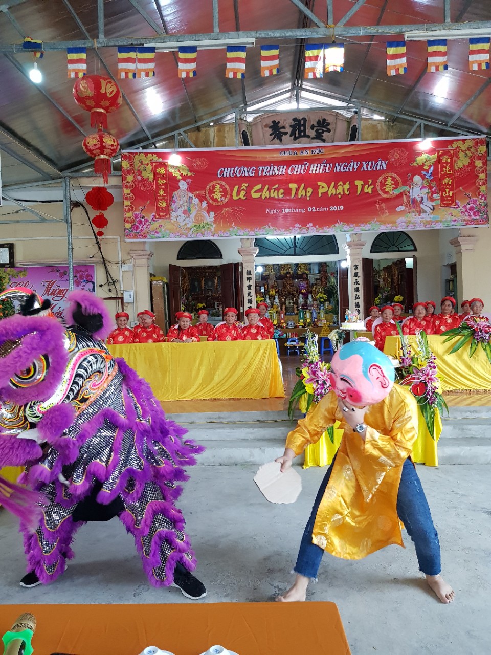 Sau phần niệm Phật cầu gia bị, Sư thầy Trụ trì đã tuyên bố lý do của buổi lễ: “Có ông bà mới có ta. Ông bà là gốc, mẹ cha là cành. Thân ta như thể lá xanh. Nhờ gốc vun bón, nhờ cành chở che”. Trong sự phát triển của xã hội hiện đại, nhiều giá trị truyền thống tốt đẹp bị mai một, đời sống tinh thần của một số người bị tha hóa bởi những trào lưu văn hóa ngoại lai. Với trách nhiệm của một công dân, trách nhiệm của người con Phật luôn muốn mọi người trong xã hội sống vui sống khỏe; đồng thời để duy trì và phát huy giá trị truyền thống của dân tộc: “Uống nước nhớ nguồn”, “Kính già, già để tuổi cho” hôm nay nhà chùa tổ chức Lễ chúc thọ các cụ cao niên bằng Chương trình Chữ Hiếu ngày xuân.
