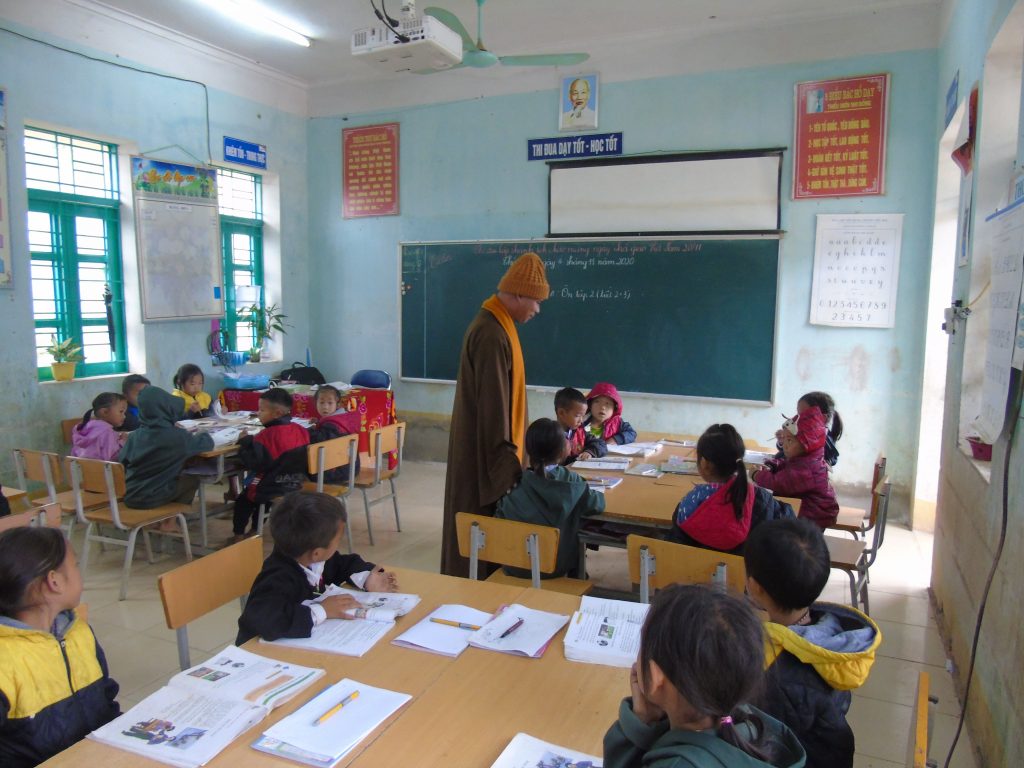 Thật lòng xót xa những ngày mưa giông tố 1 đôi dép đi gần năm, vài bộ quần áo mặc vài năm, mùa Đông đến không áo bông, áo lông, khăn ấm. Thầy không thể nhìn cuộc sống đối với trẻ thơ như vậy mà lơ đi”.