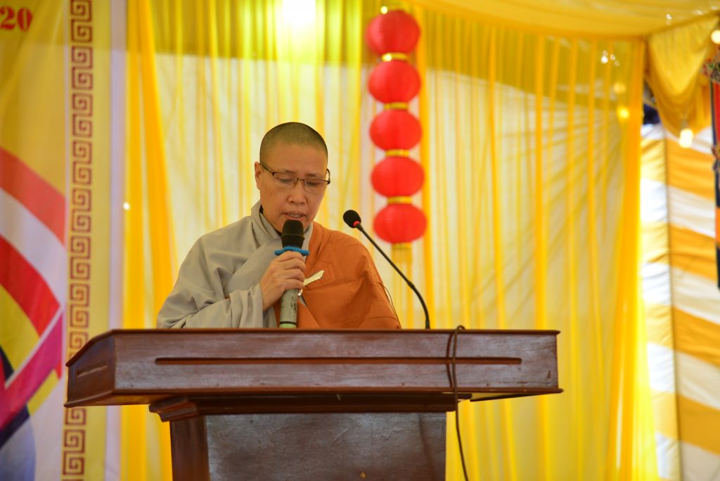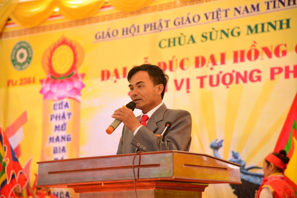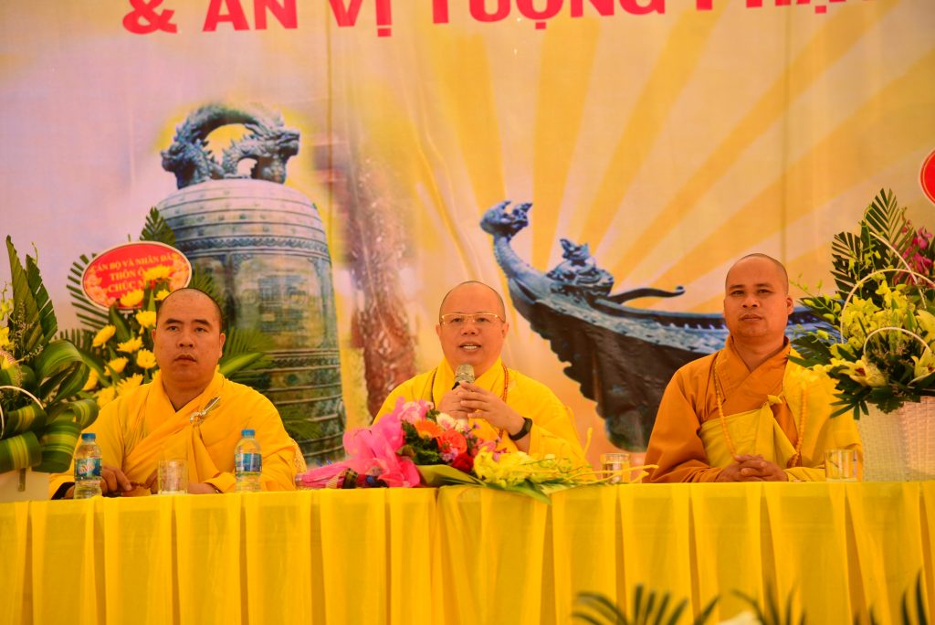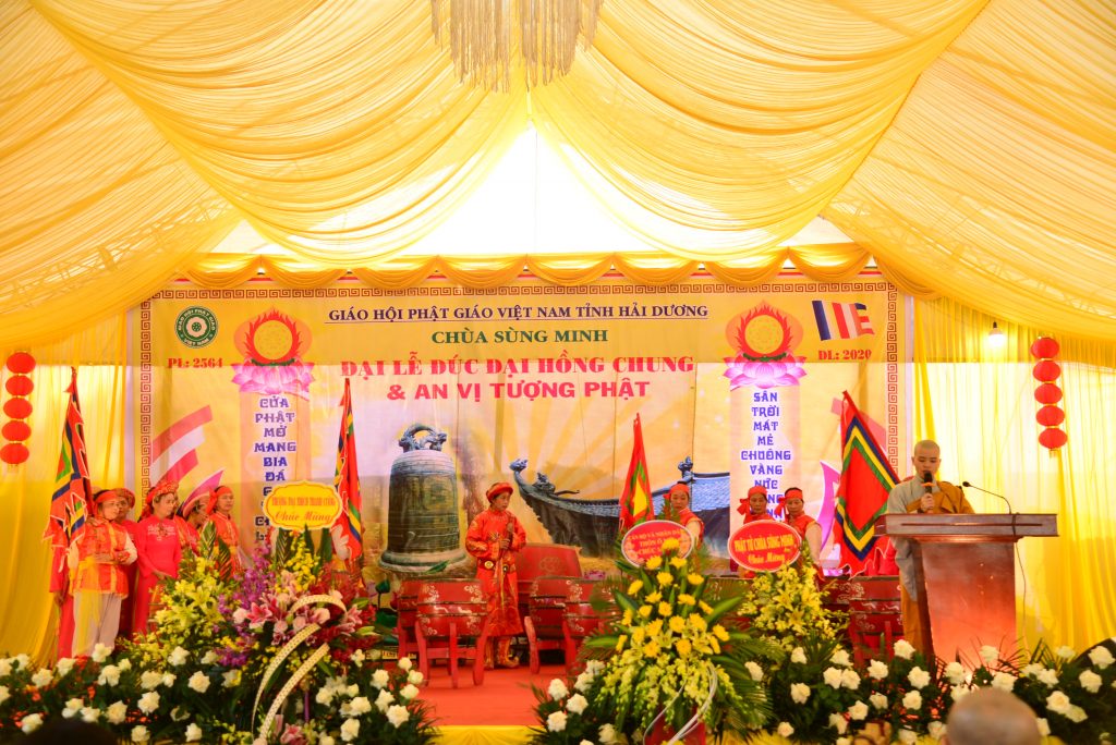 Dịp này, TT.Thích Thanh Cường đã ban đạo từ tán thán công đức của Sư cô trụ trì, các nhà hảo tâm, các Mạnh thường quân, các Phật tử đã phát tâm công đức tịnh tài, tịnh vật, đóng bè tập phúc để đúc đại hồng chung, thượng toạ cũng mong các nhà hảo tâm tiếp tục phát tâm công đức xây dựng cổng tam quan, gác chuông để treo chuông sau khi hoàn thành. Đồng thời, thượng toạ chứng minh cũng nhắc lại lịch sử của ngôi chùa, công đức của bà chúa Chén trong việc phục dựng lại ngôi chùa Sùng Minh. Ngoài ra, thượng toạ cũng nói lên ý nghĩa và công đức của việc đúc đại hồng chung.