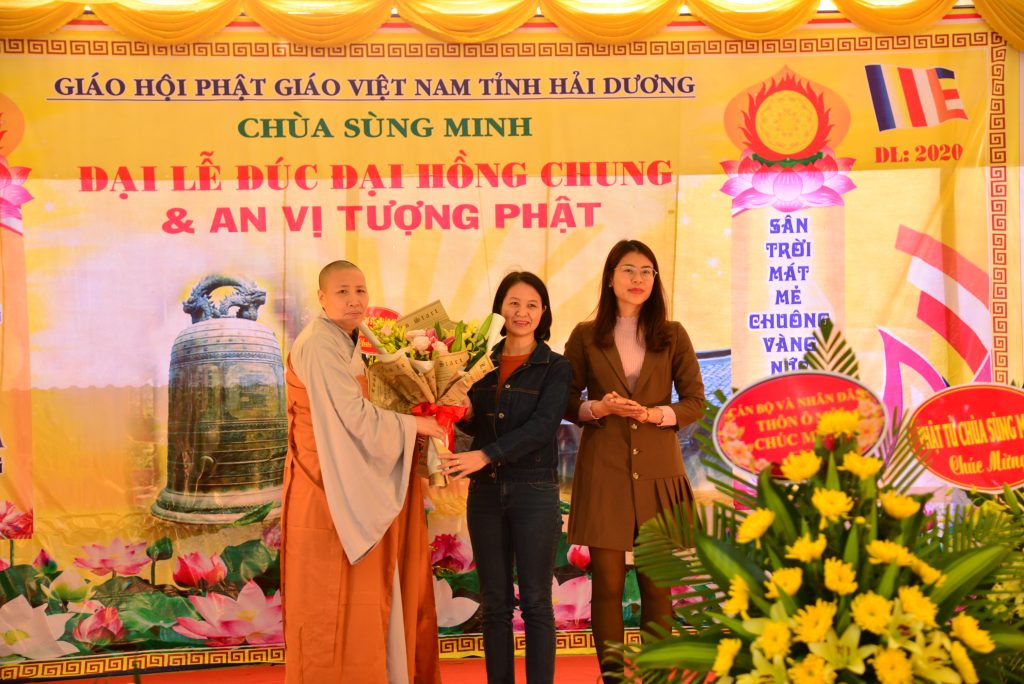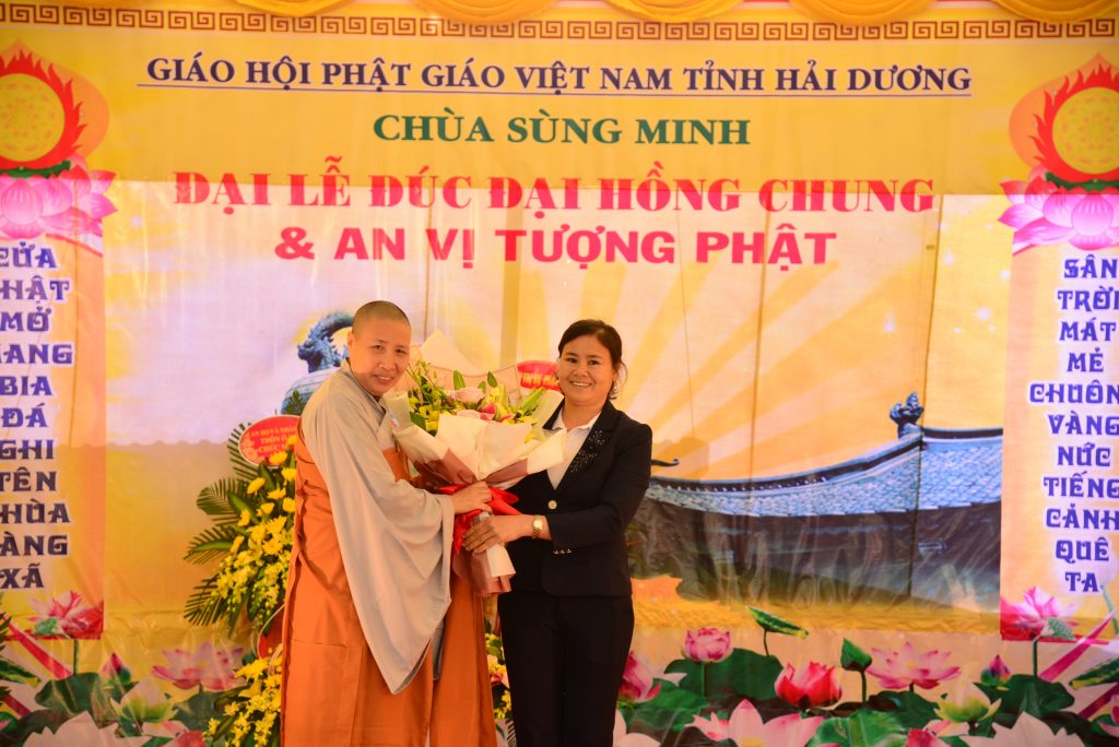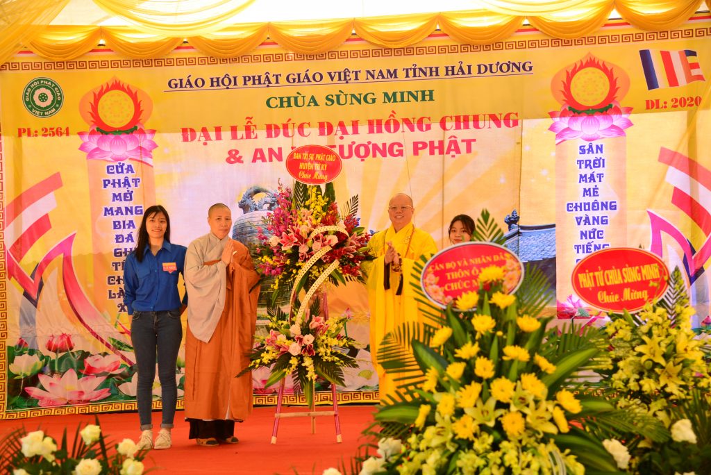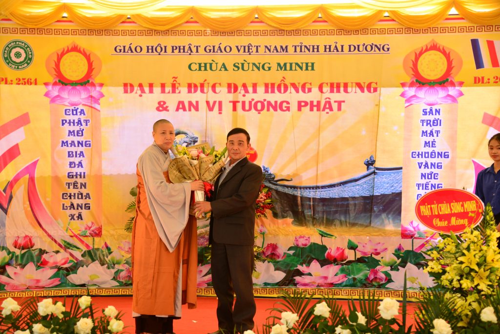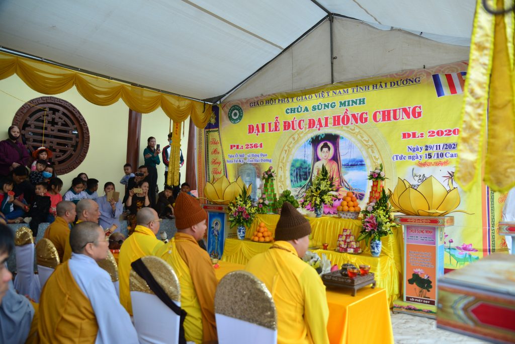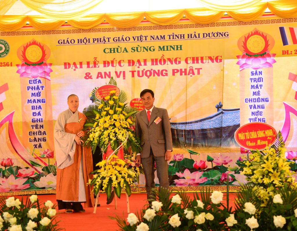 Quang lâm chứng minh buổi lễ có TT.Thích Thanh Cường - Uỷ viên Thường trực BTS GHPGVN tỉnh Hải Dương, Trưởng BTS GHPGVN huyện Tứ Kỳ; ĐĐ.Thích Tùng Lâm - Uỷ viên BTS GHPGVN tỉnh Hải Dương, Trưởng BTS GHPGVN huyện Thanh Miện; ĐĐ.Thích Thanh Trung - Chánh VP BTS GHPGVN huyện Tứ Kỳ; ĐĐ.Thích Tâm Đức - Phó BTS GHPGVN huyện Tứ Kỳ; SC.Thích Nữ Như Thảo - Phó BTS GHPGVN huyện Tứ Kỳ, trụ trì chùa Sùng Minh, Trưởng BTC đại lễ cùng đông đảo chư Tôn thiền đức Tăng Ni trụ trì các chùa trong và ngoài tỉnh Hải Dương cũng về tham dự đại lễ.