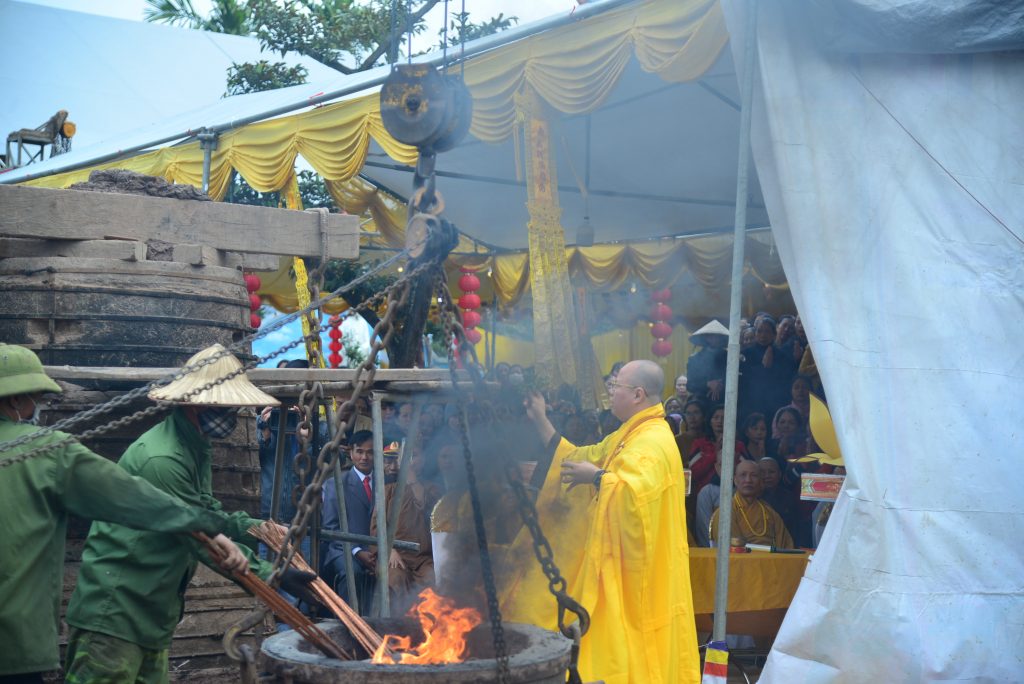 Trước khi kết thúc buổi lễ, chư Tôn đức Tăng Ni, các Phật tử và nhân dân địa phương đã làm lễ dâng hương, bạch Phật, lễ chú nguyện, sái tịnh và rót đồng đúc Đại Hồng chung trong không khí hoan hỷ, trang nghiêm thành kính.