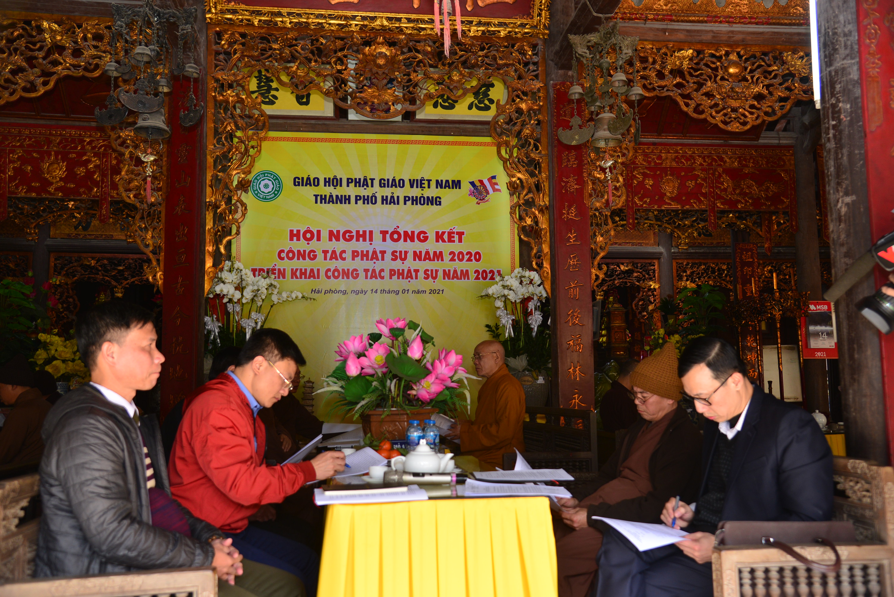 Tại Hội nghị, HT. Thích Quảng Tùng đã lấy ý kiến đóng góp của chư Tôn đức Tăng Ni và quý vị đại biểu tham dự Hội nghị cho bản Dự thảo báo cáo tổng kết công tác Phật sự năm 2020 và chương trình hoạt động Phật sự năm 2021 của GHPGVN thành phố Hải Phòng. Trên tinh thần thẳng thắn, cởi mở, các đại biểu tham dự hội nghị đã đi đến thống nhất thông qua bản Dự thảo báo cáo tổng kết công tác Phật sự năm 2020 và phương hướng công tác Phật sự năm 2021.