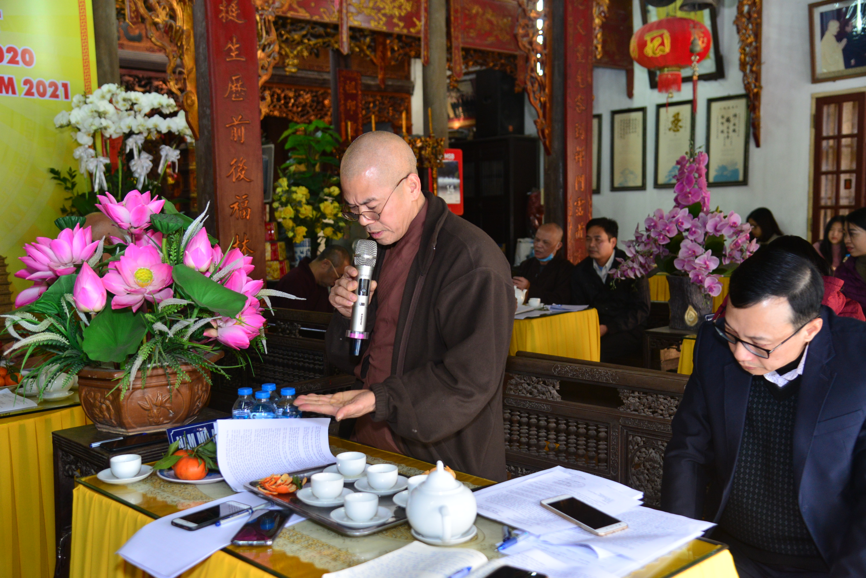 Sau lời phát biểu khai mạc Hội nghị Tổng kết công tác Phật sự năm 2020 của HT. Thích Quảng Tùng - Trưởng BTS GHPGVN thành phố, ĐĐ. Thích Bản Điền - Phó Chánh văn phòng BTS GHPGVN thành phố đã lên tuyên đọc Dự thảo Báo cáo Tổng kết công tác Phật sự năm 2020 và triển khai phương hướng hoạt động Phật sự năm 2021. Theo đó, trong năm 2020, Ban Trị sự GHPGVN thành phố đã gặt hái được những thành tựu đáng kể cả về công tác hành chính cũng như các hoạt động chuyên ngành như: Công tác Tăng sự, công tác đào tạo Tăng Ni, công tác Nghi lễ, công tác Hoằng pháp, công tác văn hóa trùng tu tôn tạo chùa cảnh, công tác hướng dẫn Phật tử, công tác từ thiện - xã hội, tham gia công tác xây dựng, bảo vệ Tổ quốc và công tác tài chính.