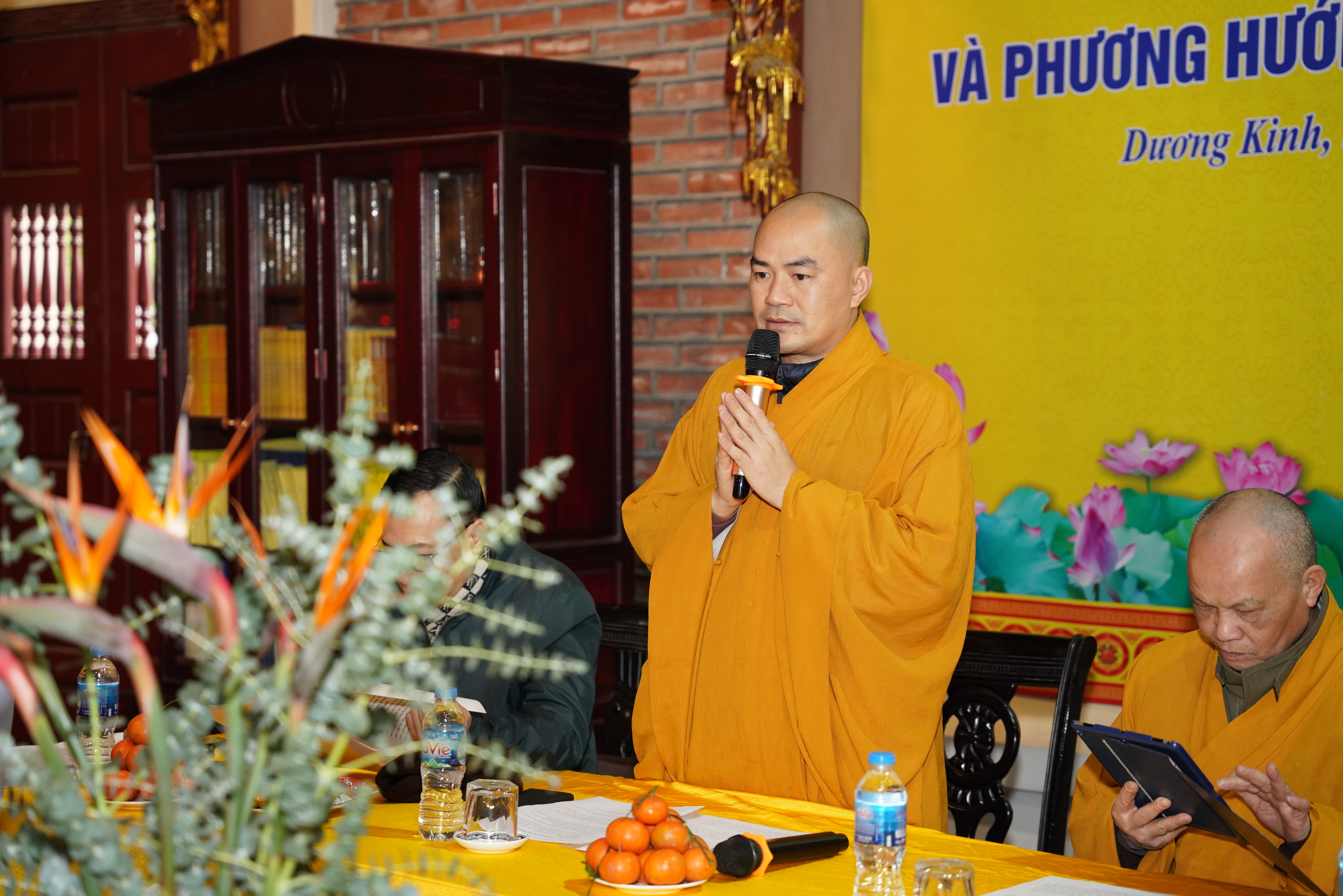 Tại Hội nghị, SC. Thích Tịnh Hương đã lên trình bày Dự thảo báo cáo tổng kết công tác Phật sự năm 2020 và nêu lên phương hướng hoạt động Phật sự năm 2021. Trong năm 2020, với sự nỗ lực của toàn thể chư Tôn đức Tăng Ni, công tác Phật sự của Ban trị sự GHPGVN quận Dương Kinh đã gặt hái được nhiều thành tựu, trên tinh thần hoà hợp, đoàn kết, được BTS GHPGVN thành phố, cũng như lãnh đạo Chính quyền các cấp quận, phường tạo mọi điều kiện quan tâm, giúp đỡ. Bản báo cáo đã nêu rõ một số vấn đề như sau: