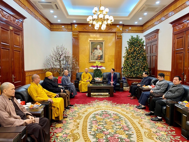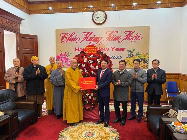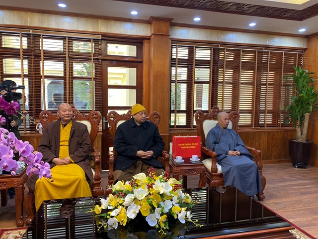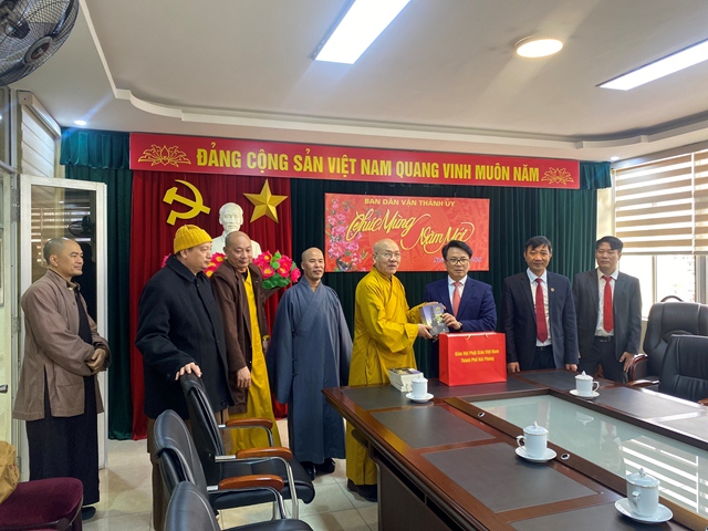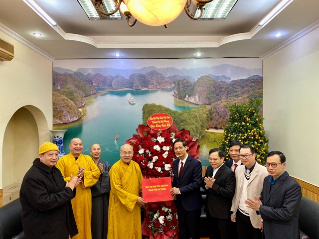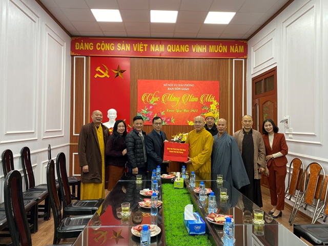 PSO - Nhân dịp chuẩn bị đón Tết cổ truyền năm Quý Mão 2023, sáng ngày 18/01/2023 (nhằm ngày 27 tháng Chạp năm Nhâm Dần), Ban Trị sự GHPGVN TP. Hải Phòng do HT. Thích Quảng Tùng – Phó Chủ tịch HĐTS, Trưởng ban TTXH Trung ương GHPGVN, Trưởng BTS Phật giáo thành phố làm trưởng đoàn đã đến chúc tết Thành ủy - UBND - UB MTTQVN, Ban Tôn giáo, Ban Dân vận, Sở Công an và các sở ban ngành liên quan của TP. Hải Phòng.