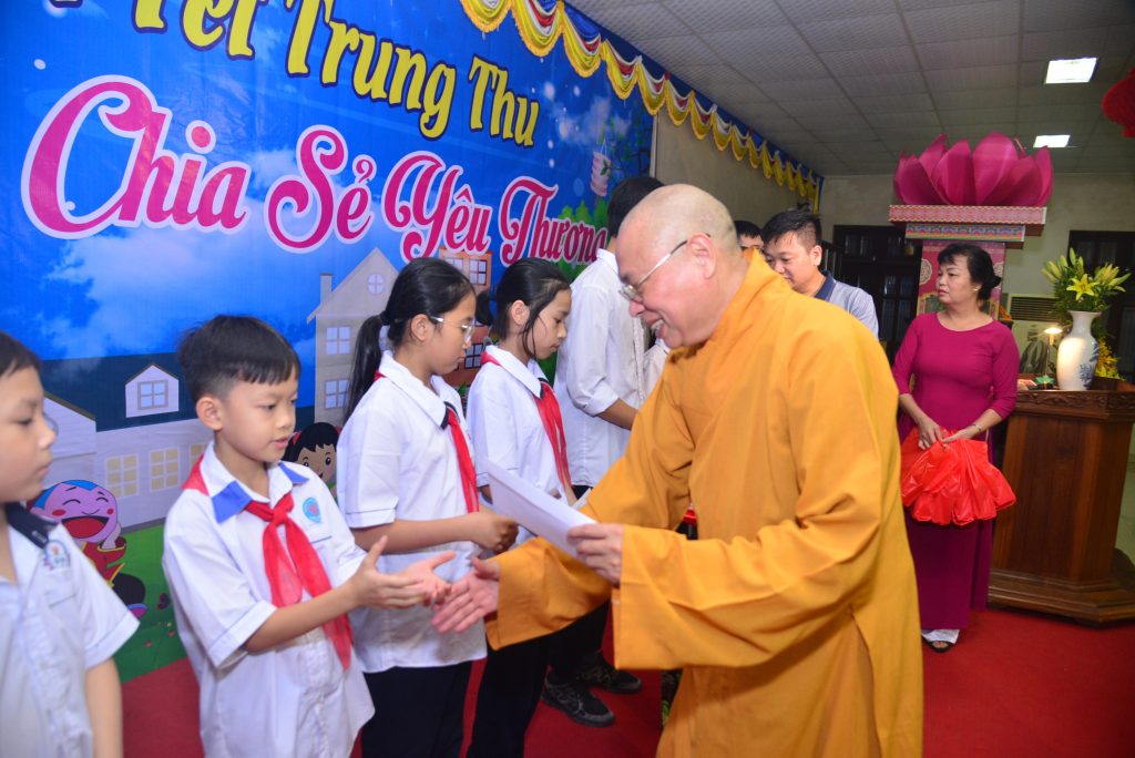 HT. Thích Thanh Giác trao quà Tết Trung thu cho các cháu
