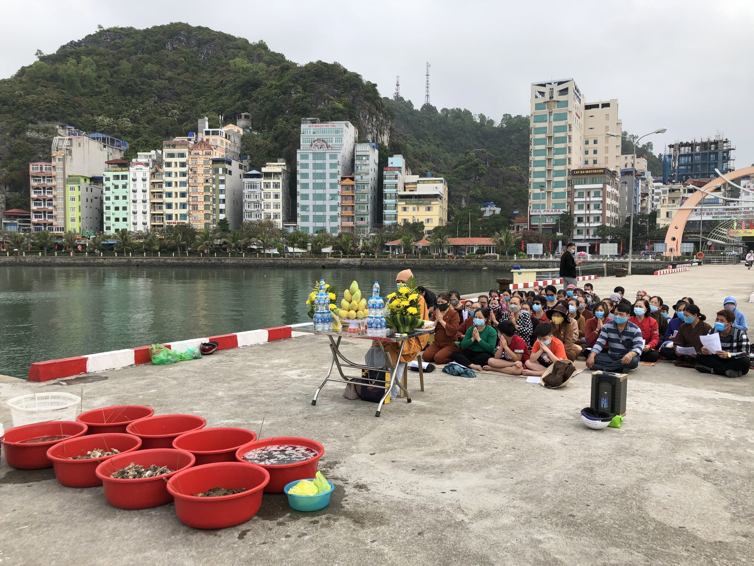 PSO - Sáng nay, ngày 14/03/2021 (nhằm ngày 2/2 năm Tân Sửu), được sự chỉ dạy của TT.Thích Tục Khang – Phó trưởng BTS GHPGVN thành phố; SC.Thích Ngọc Trân đã cùng các Mạnh thường quân, các nhà hảo tâm và đại diện Phật tử chùa Linh Quang (thị trấn Cát Bà, huyện Cát Hải, TP. Hải Phòng) tổ chức lễ phóng sinh tại Cầu cảng thị trấn Cát Bà nhằm hướng tới kỷ niệm ngày Đức Phật Thích Ca Mâu Ni nhập niết bàn 15/02 âm lịch.