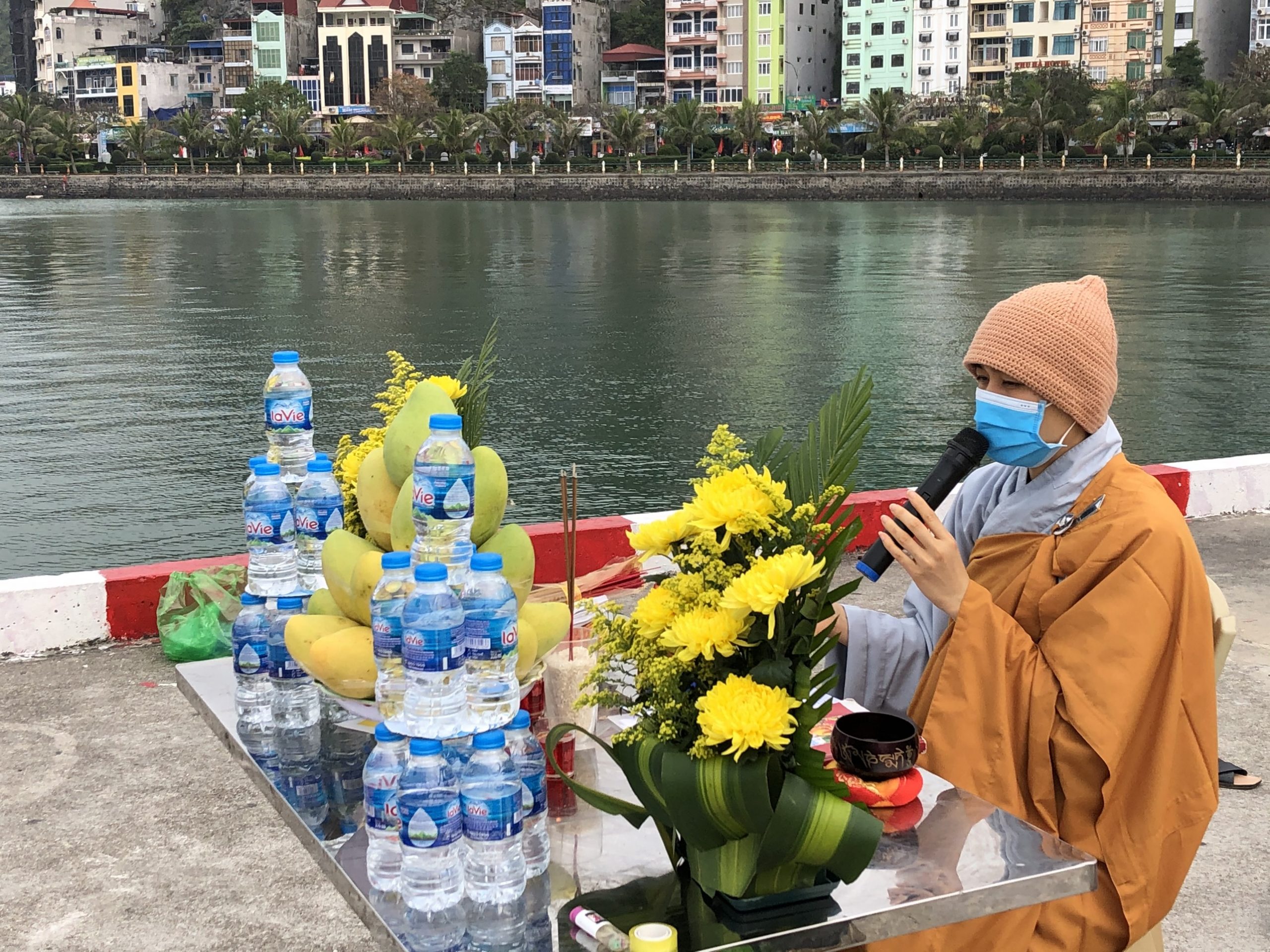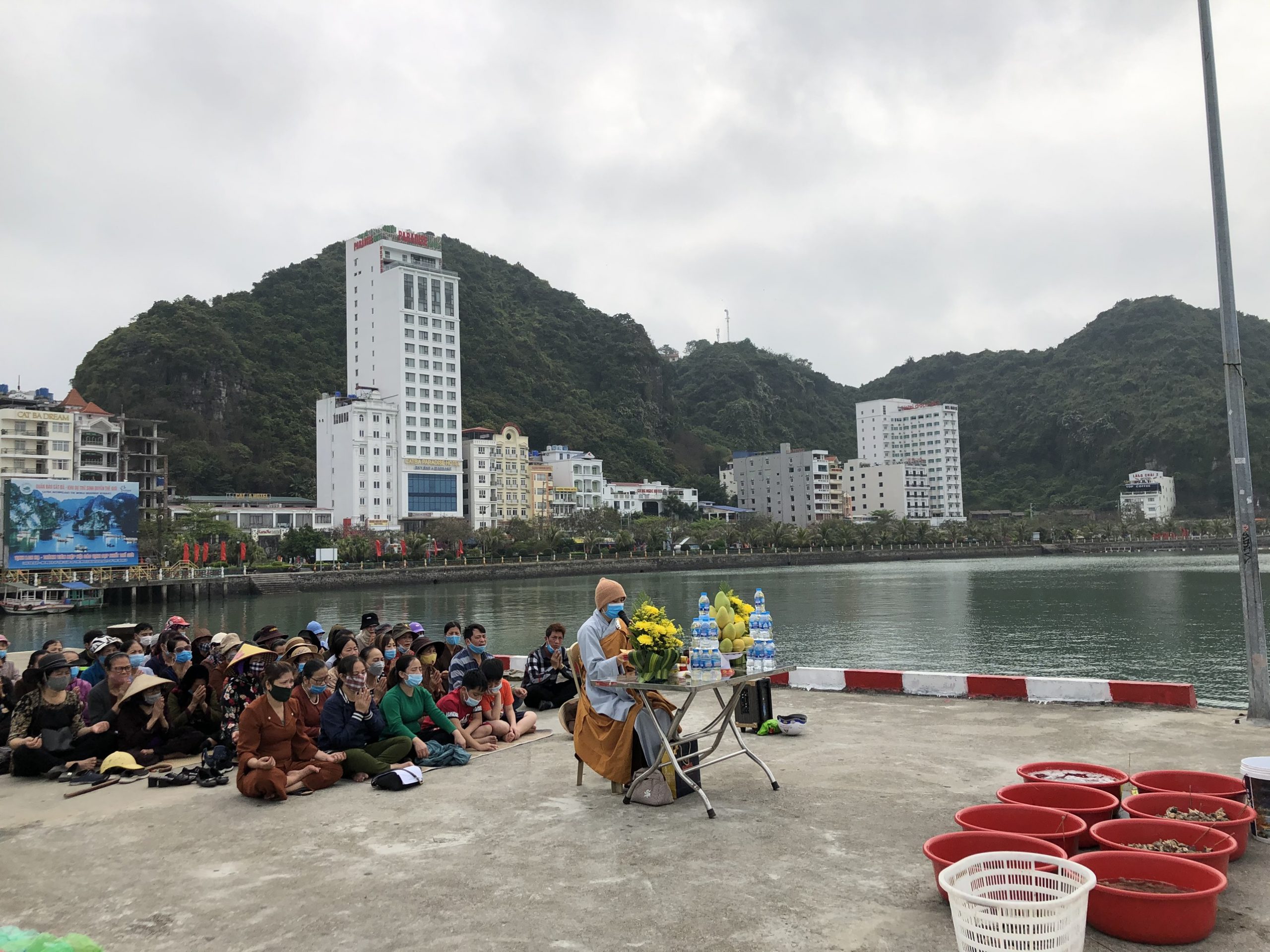 Hướng tới kỷ niệm ngày Đức Phật Thích Ca Mâu Ni nhập biết bàn 15/02 âm lịch, SC.Thích Ngọc Trân đã cùng đại diện Phật tử, các nhà hảo tâm, các Mạnh thường quân tổ chức phóng sinh một số thuỷ hải sản như: Cá, tôm, ốc, bề bề ( tôm tích), ngao, sò, cùm cụm ( cù kỳ) … tại quần đảo Cát Bà, nhằm tăng trưởng lòng từ bi và cùng chung tay bảo vệ môi trường sống, để Cát Bà mãi là quần đảo xanh, xứng đáng là khu dự trữ sinh quyển của thế giới.