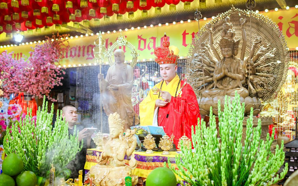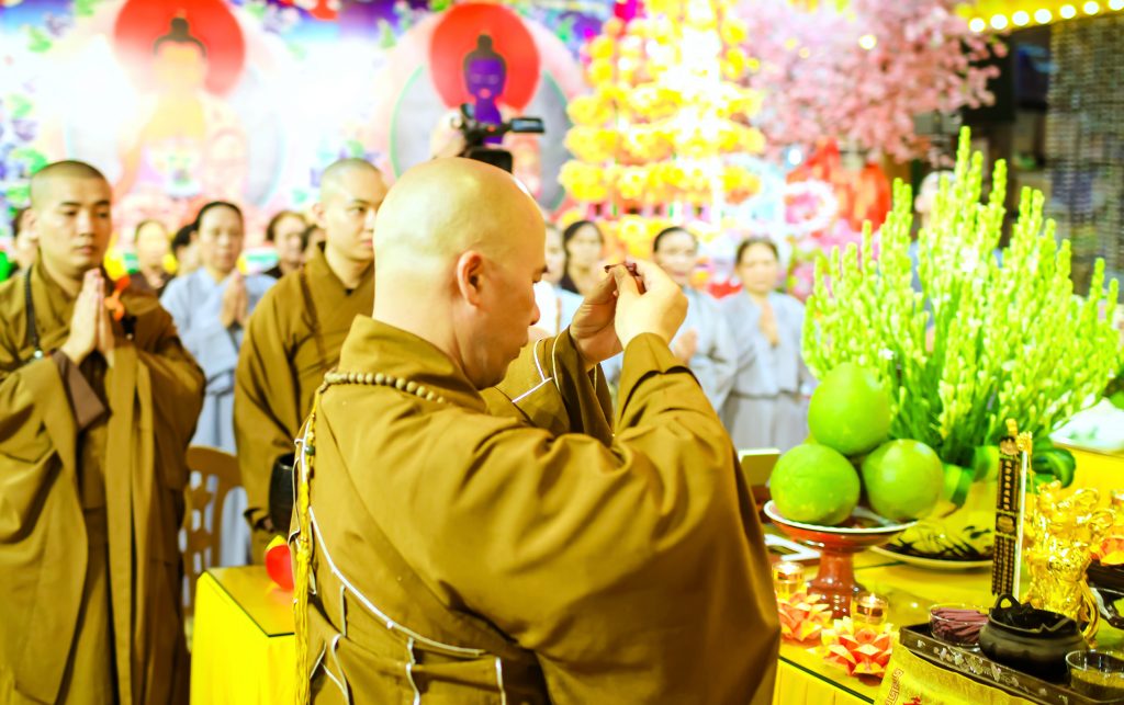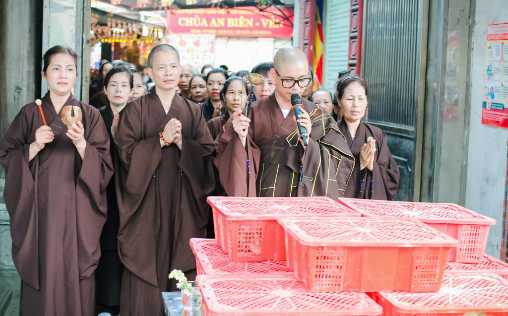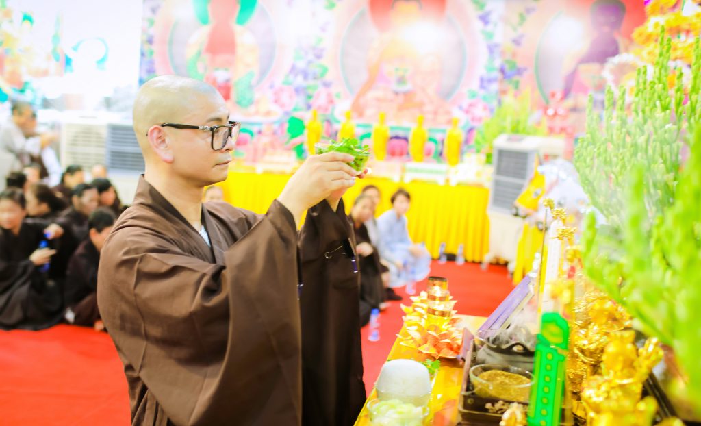 Mở đầu đại lễ là chương trình cung nghinh chư Tăng quang lâm, sau đó là nghi thức niệm Phật cầu gia hộ, nghi thức niêm hương bạch Phật và chương trình Đàn lễ cầu nguyện cho thế giới hòa bình tiêu trừ nghiệp chướng được tổ chức theo nghi thức long trọng nhất. Tiếp là Đàn tràng Kim cang bát nhã bảo sám. Lễ cúng chúng sinh, sau đó là lễ phóng sinh cầu bình an.