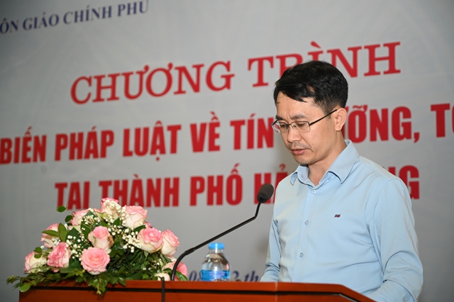 Phát biểu tại Hội nghị, ông Đào Duy Phương, Phó giám đốc Sở Nội vụ thành phố đã khái quát tình hình hoạt động của các tôn giáo tại địa phương. Thành phố Hải Phòng là trung tâm chính trị, kinh tế, văn hóa xã hội của cả nước, cùng với vị trí địa lý, giao thông thuận lợi, trong nhiều năm qua, Hải Phòng đã tiếp nhận nhiều luồng văn hóa, tín ngưỡng, tôn giáo với nhiều quốc gia khác nhau, trong đó: có 59 tổ chức thuộc 04 tôn giáo (Phật giáo, Công giáo, Cao đài và Tin lành); có 739 cơ sở thờ tự, trên 521 chức sắc, 1.394 chức việc và trên 41 vạn tín đồ (chiếm 21% dân số thành phố). Trong thời gian qua, hoạt động của các tổ chức tôn giáo, cơ sở tìn ngưỡng trên địa bàn thành phố Hải Phòng nhìn chung hoạt động thuần túy, chấp hành tốt các chủ trương của Đảng và chính sách, pháp luật của Nhà nước, sống tốt đời và đẹp đạo, góp phần cùng toàn dân tham gia sự nghiệp xây dựng và bảo vệ Tổ quốc, hoạt động từ thiện nhân đạo với nhiều chục tỷ đồng đã được các tôn giáo ủng hộ tích cực, tạo sự lan tỏa, góp phần đảm bảo an sinh xã hội tại địa phương.