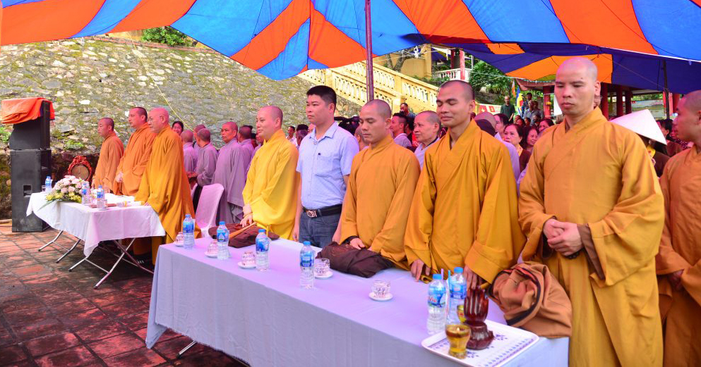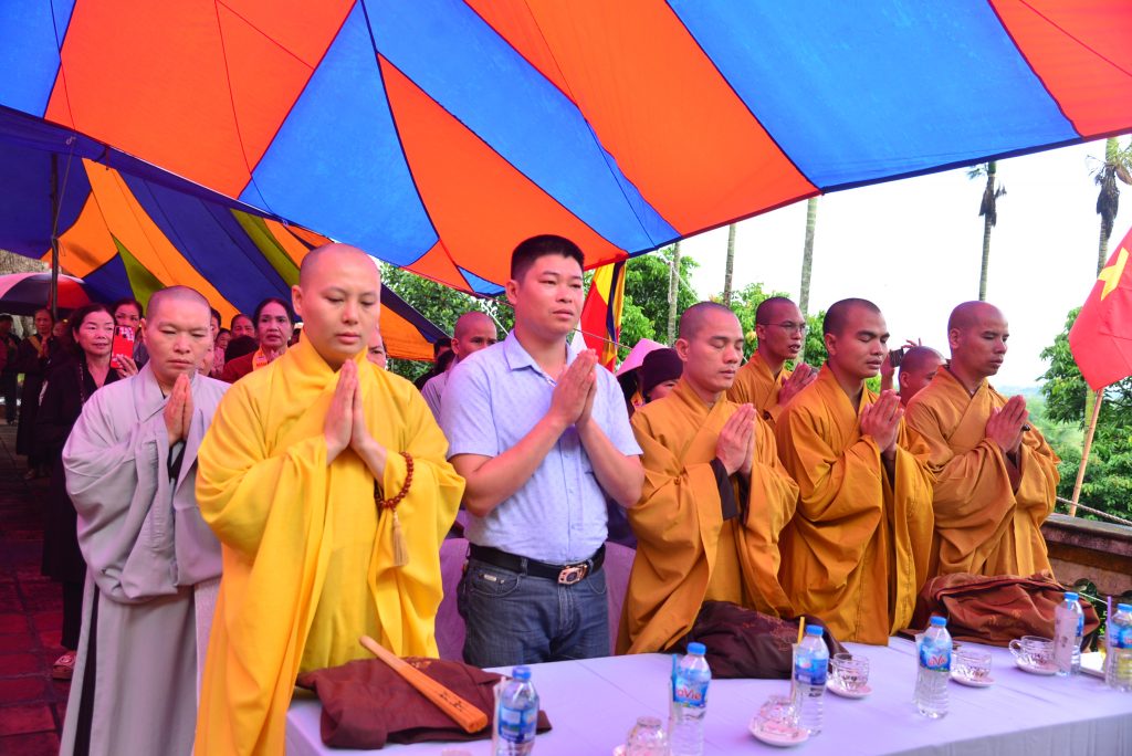 Trước khi kết thúc buổi lễ, chư Tôn đức Tăng Ni, chính quyền địa phương và nhân dân Phật tử đã cử hành nghi lễ niêm hương, bạch Phật, lễ chú nguyện an vị long cốt Ngôi đại hùng Bảo Điện và ngôi Tổ Đường chùa Linh Sơn trong không khí hoan hỷ, ấm tình đạo vị.