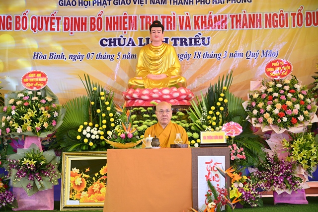 Hòa thượng Thích Quảng Tùng ban đạo từBan đạo từ tại buổi lễ, Hòa thượng Thích Quảng Tùng đã nói lên vai trò, trách nhiệm, của một vị Sư trụ trì. Theo đó, vị trụ trì là chiếc cầu nối giữa đạo Phật và các tín đồ, Phật tử. Đó chính là việc làm vô cùng quan trọng và ý nghĩa của vị trụ trì. Hòa thượng căn dặn Sư cô tân trụ trì, sau khi chính thức được bổ nhiệm, với trọng trách của mình, Sư cô sẽ chịu trách nhiệm quản lý tự viện, hướng dẫn mọi sinh hoạt tôn giáo tại cơ sở; nghiêm chỉnh chấp hành mọi đường lối. chính sách Pháp luật của Nhà nước; Hiến chương, nội quy, quy định của Ban Tăng sự Giáo hội Phật giáo Việt Nam nói chung và Giáo hội Phật giáo Việt Nam TP.Hải Phòng nói riêng. Đồng thời, phối kết hợp cùng chính quyền địa phương sở tại, thực hiện tốt vấn đề an sinh xã hội, đưa huyện nhà ngày càng phát triển. Hòa thượng cũng mong chính quyền địa phương tiếp tục tạo mọi điều kiện giúp đỡ Sư cô để Sư cô hoàn thành tốt các công tác Phật sự trong thời gian tới.