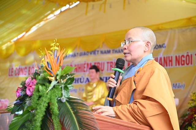 Sư cô tân trụ trì dâng lời phát nguyệnSau khi đón nhận Quyết định bổ nhiệm trụ trì, Sư cô tân trụ trì đã đối trước chư Tăng dâng lời phát nguyện: Đối với Dân tộc và Đạo pháp, nguyện làm tròn bổn phận của một tu sỹ dưới sự lãnh đạo của Giáo hội, sống và làm việc theo đúng luật pháp của Nhà nước; Đối với quý đạo hữu, Phật tử địa phương, nguyện làm tấm gương mẫu mực để hướng dẫn bà con Phật tử tu học, làm cho cuộc sống đạo và đời ngày một tốt đẹp hơn, theo phương châm của Giáo hội Phật giáo Việt Nam đã đề ra: “Đạo Pháp – Dân Tộc – Chủ Nghĩa Xã Hội”.