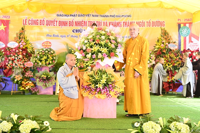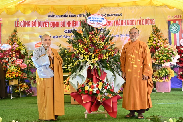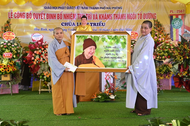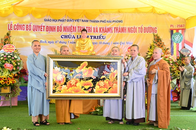 Dịp này, Sư cô tân trụ trì đã đón nhận những lẵng hoa tươi thắm, những món quà rất ý nghĩa từ chư Tôn đức BTS GHPGVN thành phố, Ban Trị sự GHPGVN huyện Vĩnh Bảo, lãnh đạo chính quyền địa phương, thầy y chỉ sư, cựu Tăng Ni sinh đồng môn, gia đình của Sư cô tân trụ trì, đại diện các đạo tràng, quý Phật tử địa phương và tôn giáo bạn.