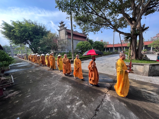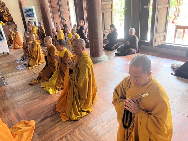 Đúng 8h00’, tất cả các hành giả an cư tại cơ sở 3 đã vân tập về chính điện chùa Thắng Phúc để lễ Phật cầu gia bị. Tiếp đó, chư Tôn đức Tăng Ni đã vân tập tại Giảng đường tổ đình Thắng Phúc để tham dự lễ Khai Pháp khóa hạ hậu an cư PL. 2566 – DL. 2022.