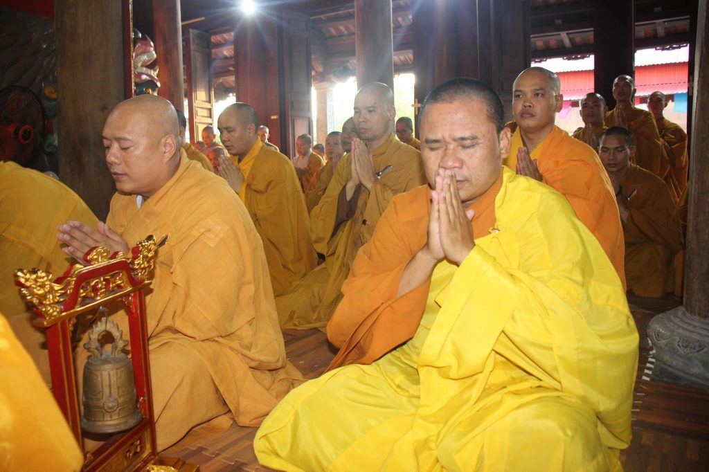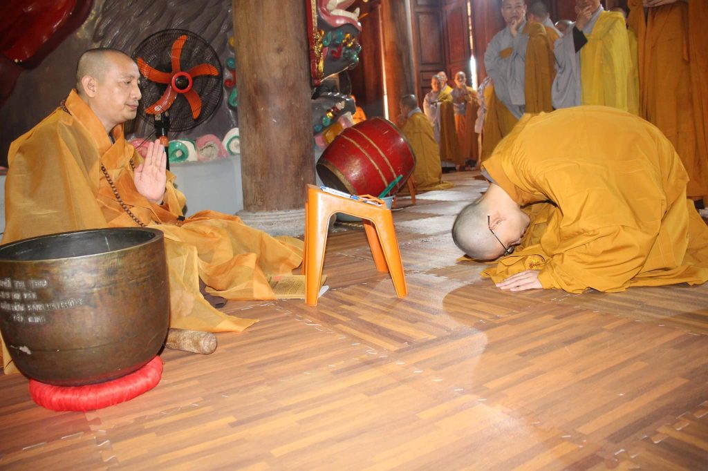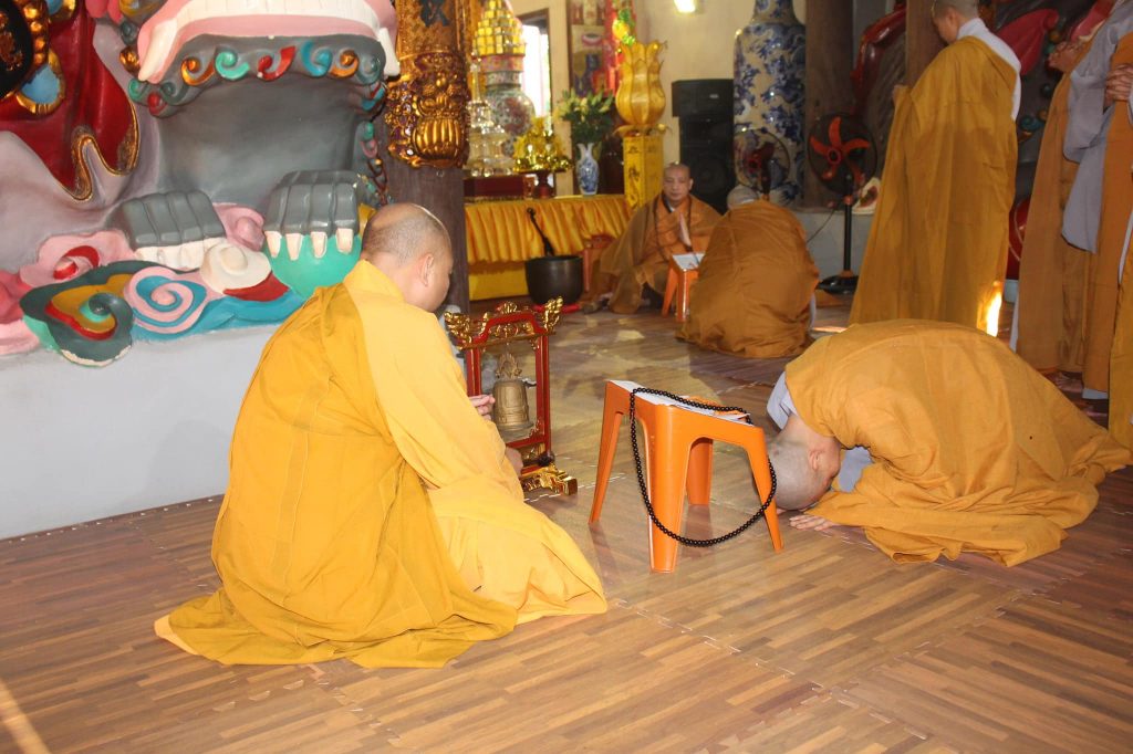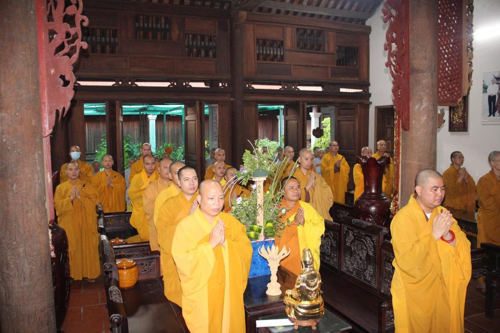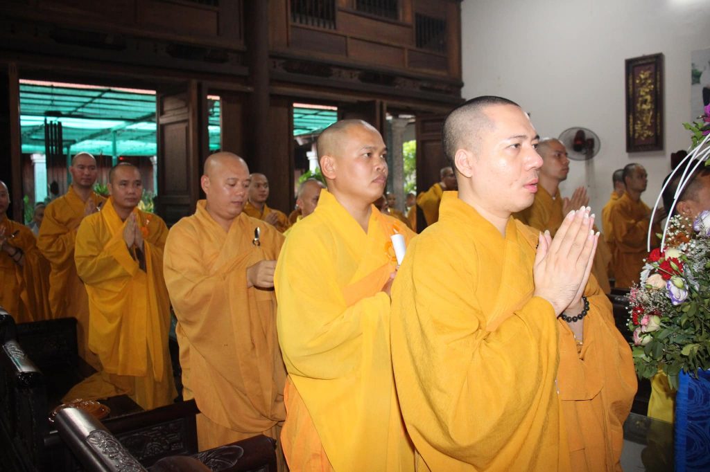 Quang lâm chứng minh và tham dự lễ tạ pháp có sự hiện diện của TT. Thích Quảng Minh - Thủ chúng hạ trường Cơ sở 3; ĐĐ. Thích Bản Điền - Chánh Duy-na trường hạ Cơ sở 3 cùng 90 hành giả đang thực hiện cấm túc an cư tại trường hạ tổ đình Thắng Phúc.