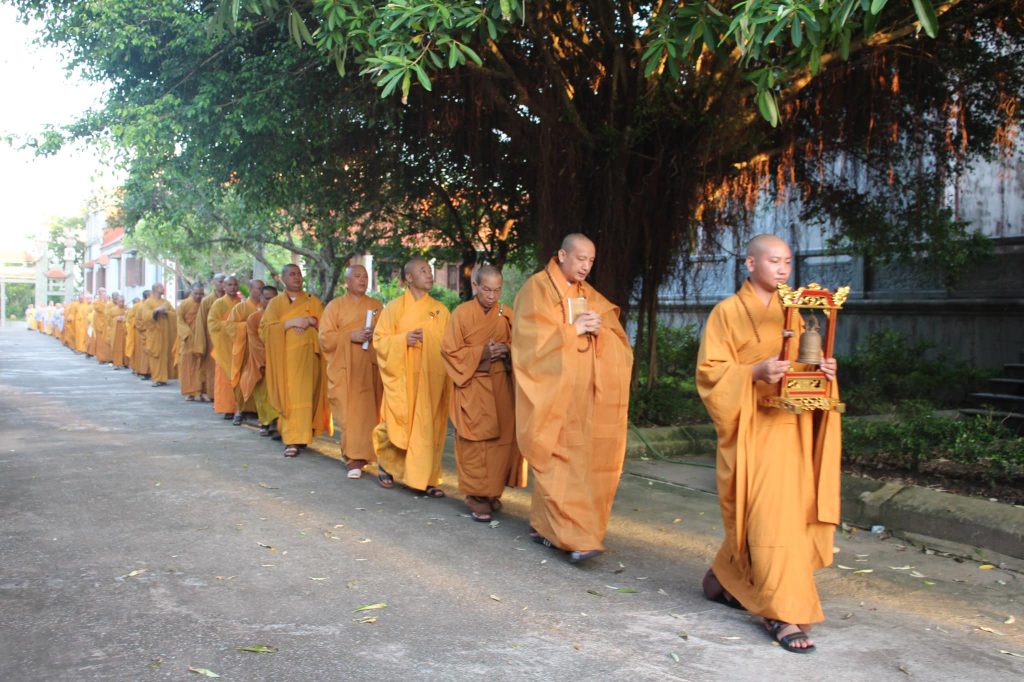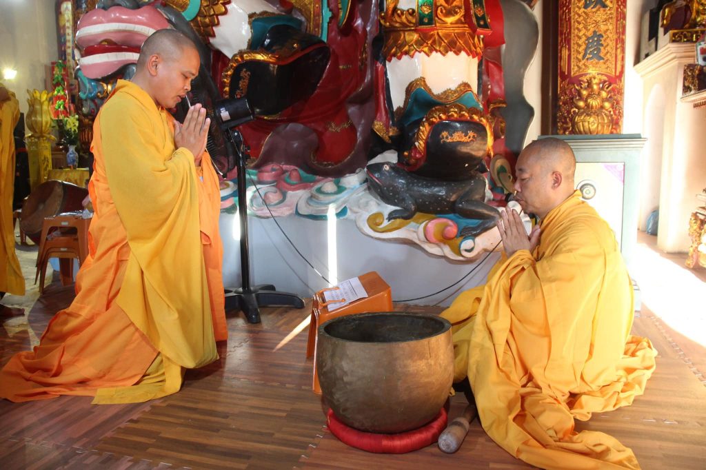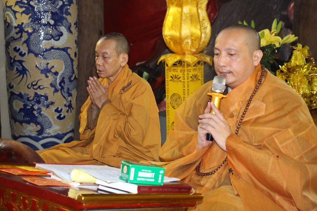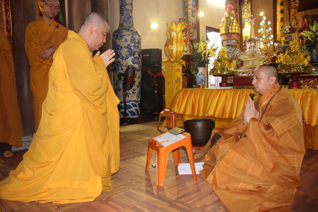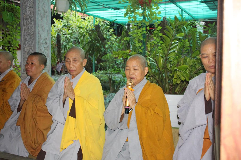 Quang lâm chứng minh và tham dự lễ tạ pháp có sự hiện diện của TT. Thích Quảng Minh - Thủ chúng hạ trường Cơ sở 3; ĐĐ. Thích Bản Điền - Chánh Duy-na trường hạ Cơ sở 3 cùng 90 hành giả đang thực hiện cấm túc an cư tại trường hạ tổ đình Thắng Phúc.