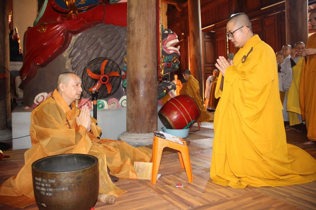 Đúng 6h00 sáng, chư Tôn đức Tăng Ni nhị bộ của hạ trường Cơ sở 3 trang nghiêm vân tập về tổ đường chùa Thắng Phúc, thành kính dâng hương, đỉnh lễ chư Lịch đại Tổ Sư và cung nghinh chư Tôn đức Thủ Chúng, Ban Duy-na hạ trường quang lâm Phật điện tổ đình Thắng Phúc để cử hành nghi lễ niêm hương, bạch Phật, lễ cầu gia bị, chúc tán Tam Bảo, chúc tán Hộ pháp vi đà và chúc tán Long thần thổ địa. Sau đó chư Tăng đã thực hiện Yết-ma sai tự tứ nhân và nhận tự tứ.