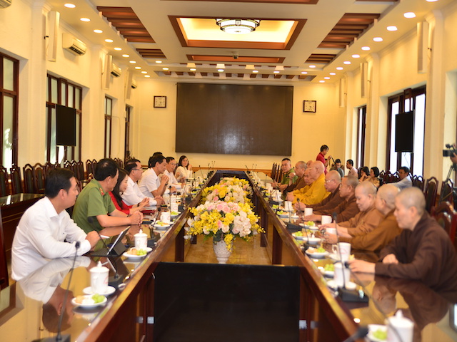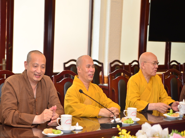 Tiếp phái đoàn Ban Thường trực BTS GHPGVN thành phố có ông Đỗ Mạnh Hiến – Phí Bí thư Thường trực Thành uỷ, Trưởng Ban chỉ đạo công tác Tôn giáo – Dân tộc Thành uỷ; ông Lê Khắc Nam – Ủy viên Thành ủy, Phó Chủ tịch UBND thành phố; cùng các ông bà đại diện lãnh đạo Ủy ban MTTQVN thành phố, Ban Dân vận Thành ủy, Công an thành phố, Sở Nội vụ, Văn phòng Thành ủy, Văn phòng UBND thành phố, Ban Tôn giáo – Sở Nội vụ…