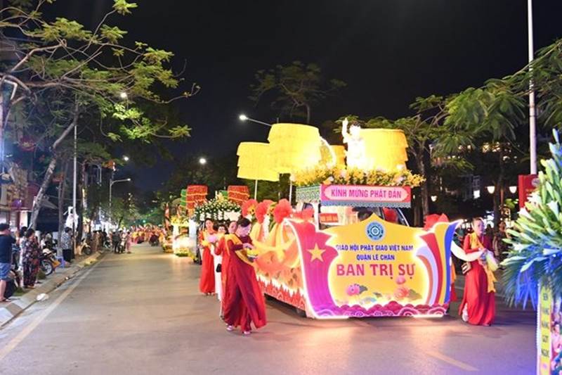 Ngay sau khi tổ chức buổi lễ hành chính tại trụ sở GHPGVN thành phố Hải Phòng, chư Tôn đức Tăng Ni đã tổ chức lễ diễu hành xe hoa, rước Phật, rước hoa đăng tại một số tuyến phố chính của thành phố và nhiễu Phật, rước Phật quanh Hồ Tam Bạc với chiều dài khoảng 5km tính từ trụ sở GHPGVN thành phố với sự tham dự của đông đảo chư Tôn đức Tăng Ni, Phật tử và nhân dân thành phố.