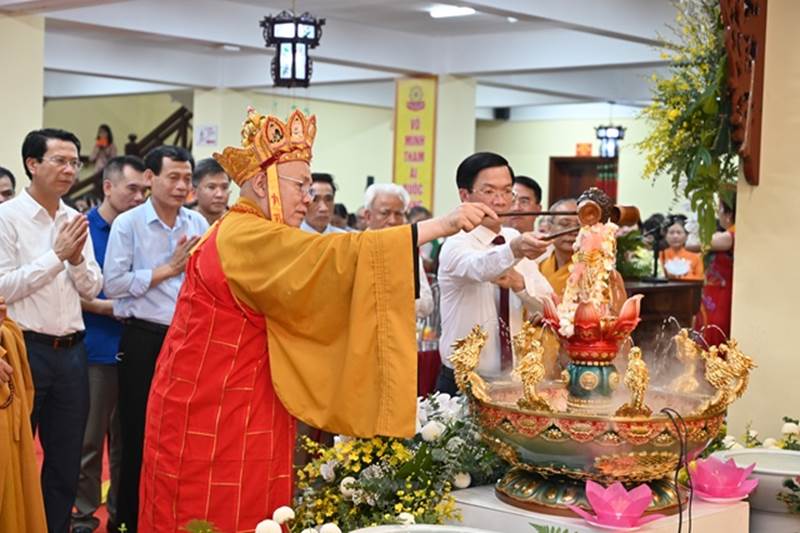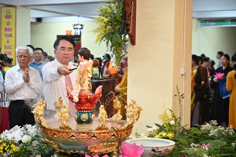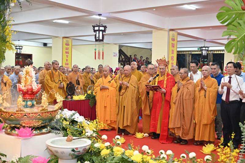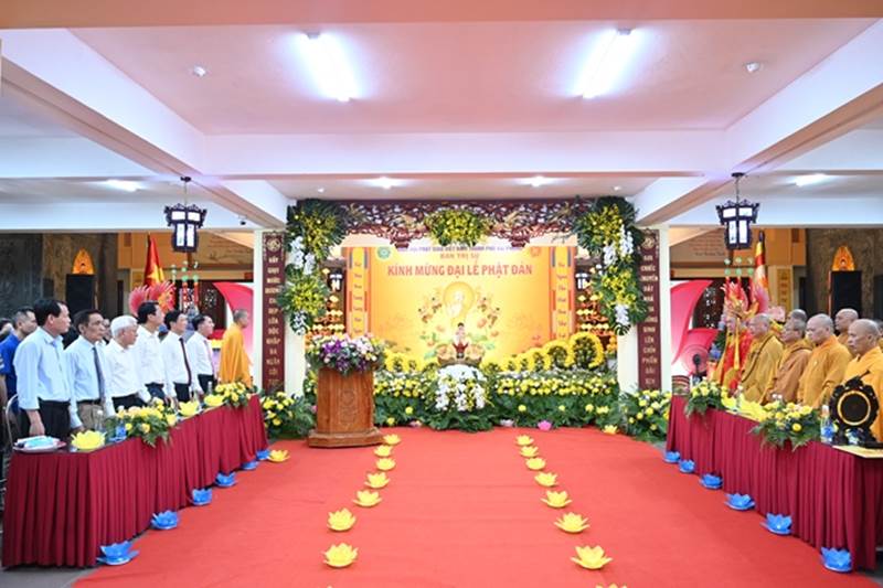 Đại diện lãnh đạo chính quyền các cấp tham dựSau nghi thức niệm Phật cầu gia bị, chào Quốc Kỳ, Đạo Kỳ, một phút nhập từ bi quán tưởng nhớ đến chư Tôn đức lãnh đạo GHPGVN qua các thời kỳ, các vị anh hùng Dân tộc, các anh hùng liệt sĩ đã hy sinh cho Độc lập, tự do của Đất nước.
