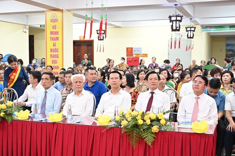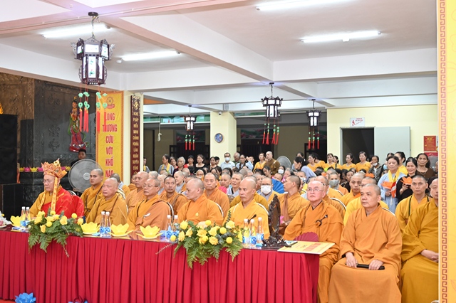 Quang cảnh buổi lễQuang lâm chứng minh và tham dự đại lễ có sự hiện diện của HT. Thích Quảng Tùng - Phó Chủ tịch HĐTS, Trưởng ban TT-XH Trung ương GHPGVN, Trưởng BTS GHPGVN TP.Hải Phòng; HT. Thích Thanh Giác - Phó trưởng ban Thường trực BTS GHPGVN TP.Hải Phòng; TT. Thích Tục Khang - Ủy viên HĐTS Trung GHPGVN, Phó trưởng BTS GHPGVN thành phố, cùng chư Tôn thiền đức Tăng Ni, Ủy viên Thường trực BTS GHPGVN thành phố, chư Tôn đức Tăng Ni BTS GHPGVN các quận huyện trên địa bàn thành phố và chư Tôn đức trụ trì các chùa trong và ngoài TP. Hải Phòng.