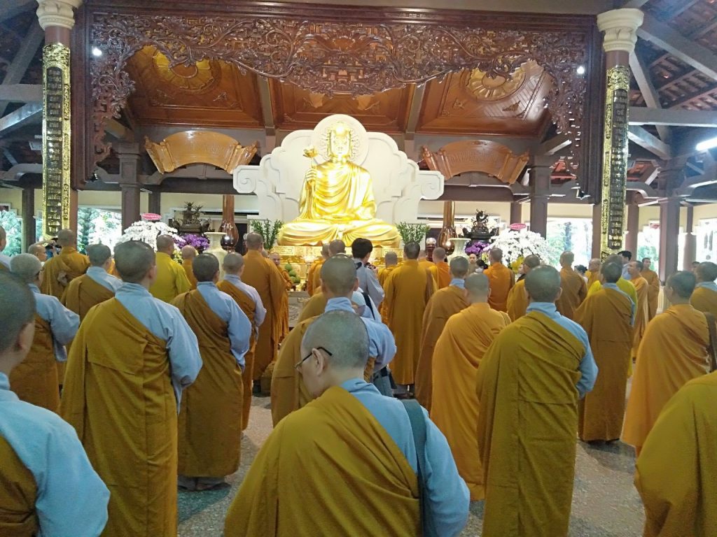 Đoàn khởi hành từ cơ sở I Học viện Phật giáo Việt Nam tại TP.HCM (Số 750 Nguyễn Kiệm, Quận Phú Nhuận, TP.HCM) đến Thiền viện Thường Chiếu (1C QL51, Phước Thái, Long Thành, Đồng Nai).