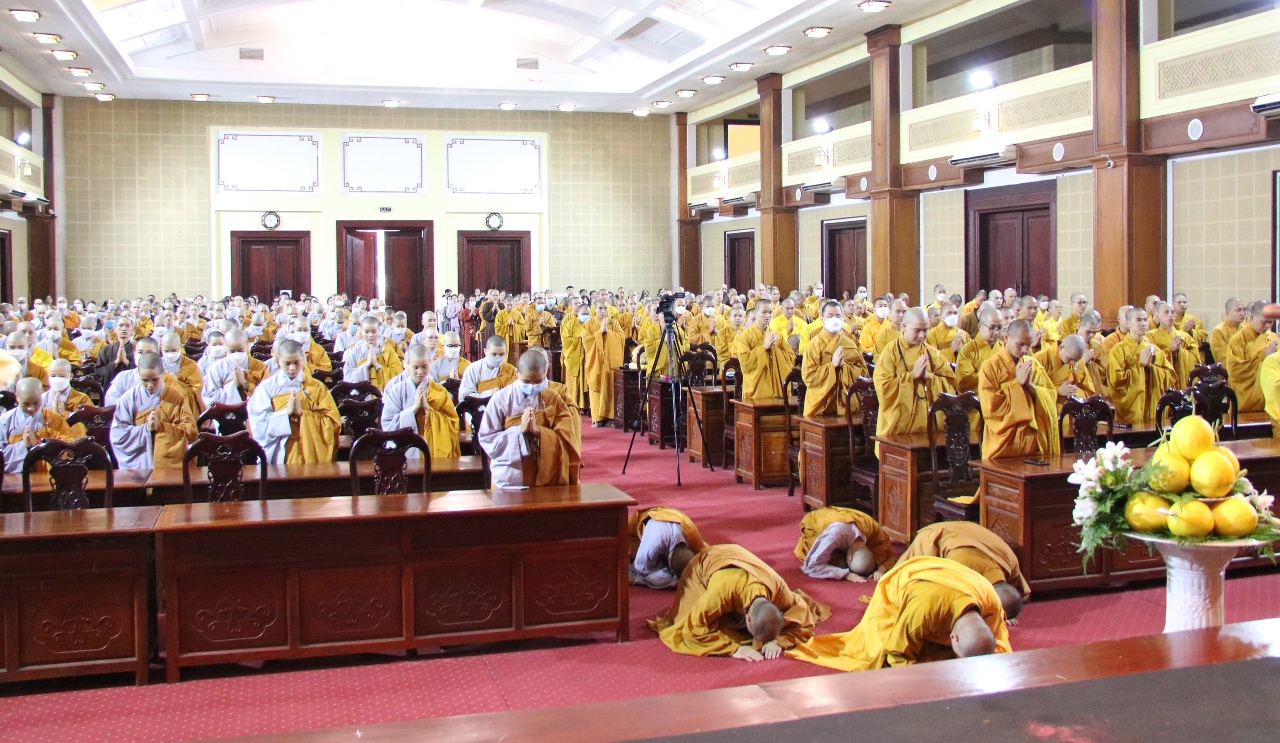 Kết thúc buổi lễ, chư tôn đức và đại chúng đã niêm hương bạch Phật, đỉnh lễ Tam Bảo và trì tụng Bát Nhã tâm kinh, niệm Phật hồi hướng về tứ ân lục đạo, cầu nguyện cho quốc thái dân an, Phật pháp trường tồn, Tăng già hưng thịnh.