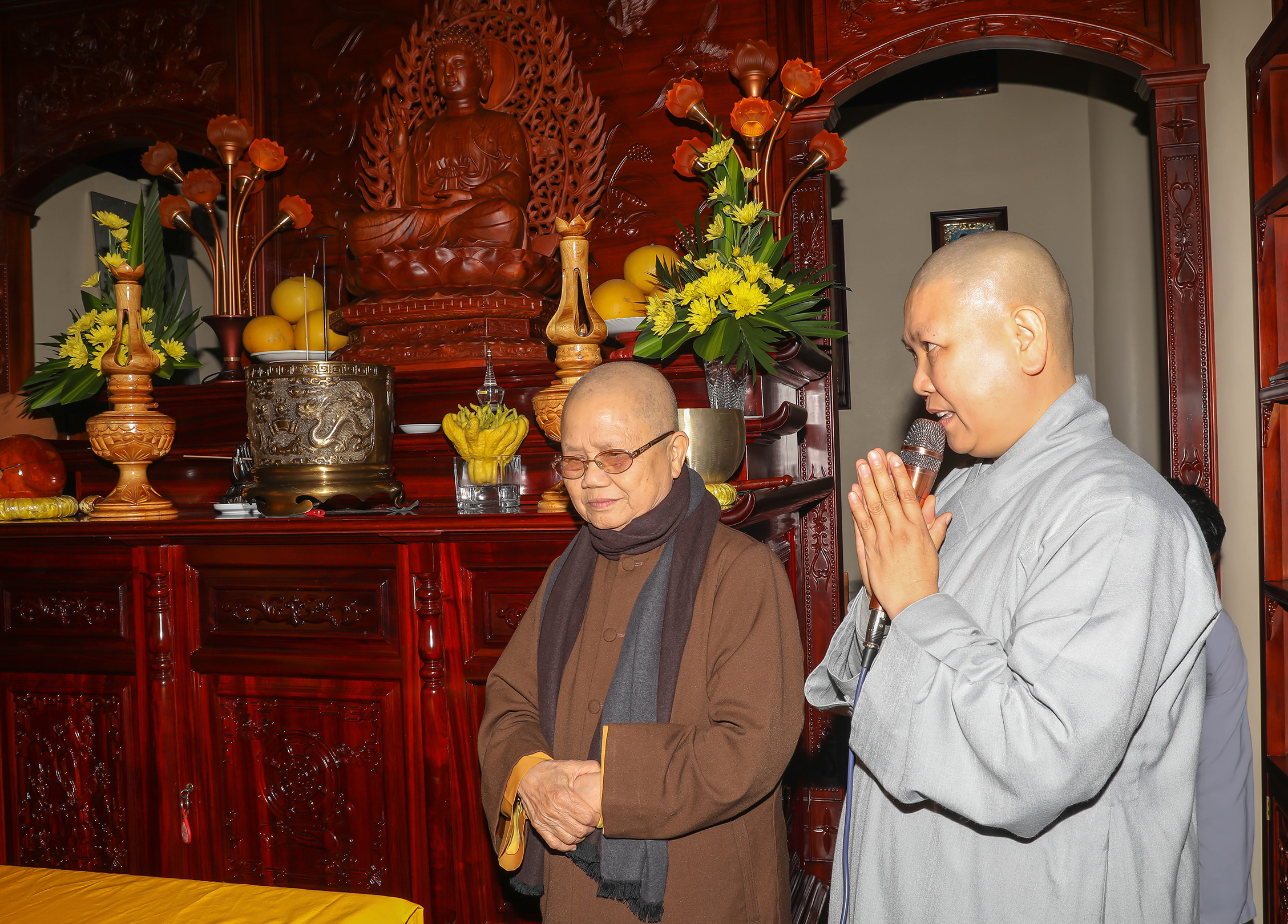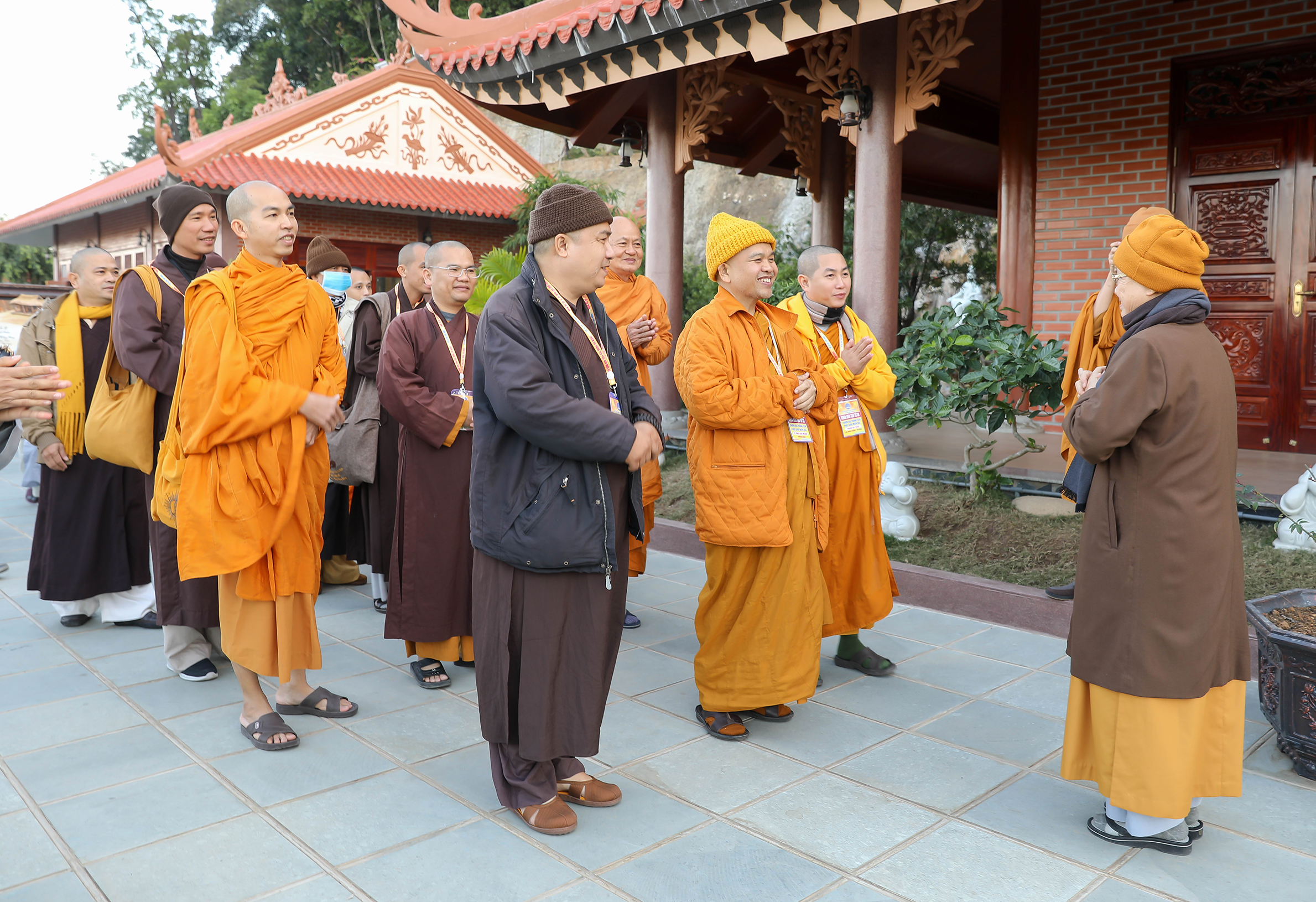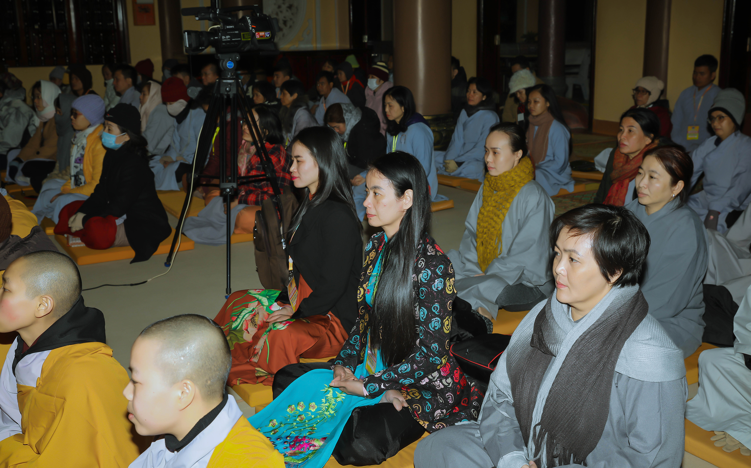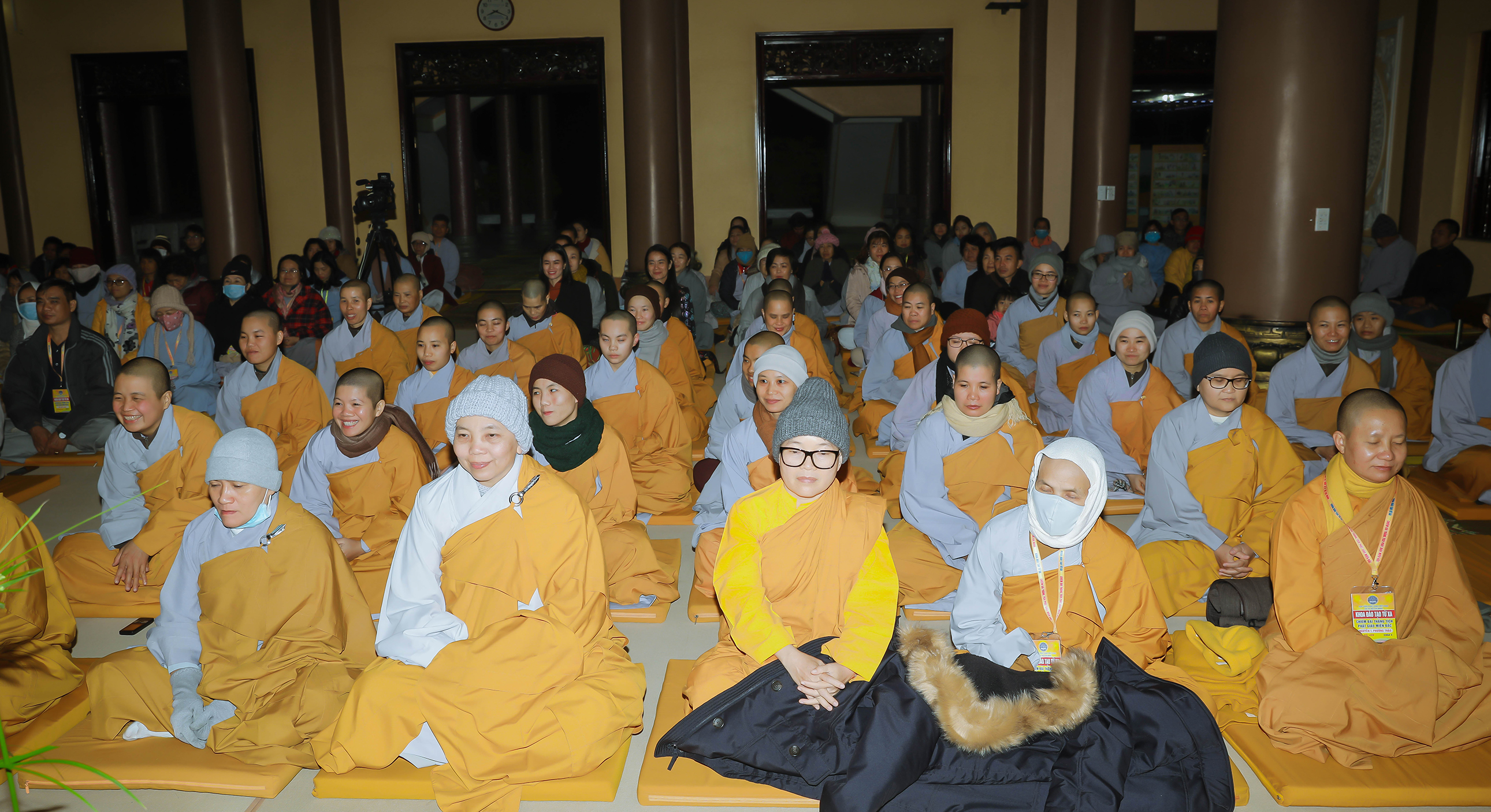 Buổi tối cùng ngày tại giảng đường trung tâm của Thiền viện Quý chư Tôn đức đã tổ chức chương trình gặp gỡ giao lưu và, trong tình linh sơn Pháp lữ Ni sư Thích Huệ Bảo - Trụ trì Thiền viện đã chia sẻ cảm xúc khi được vinh dự đón đoàn Lãnh đạo Học viện Phật giáo Việt nam tại TP.HCM cùng toàn thể đại chúng đã đến thăm và có những phần quà động viên tới Thiền viện.