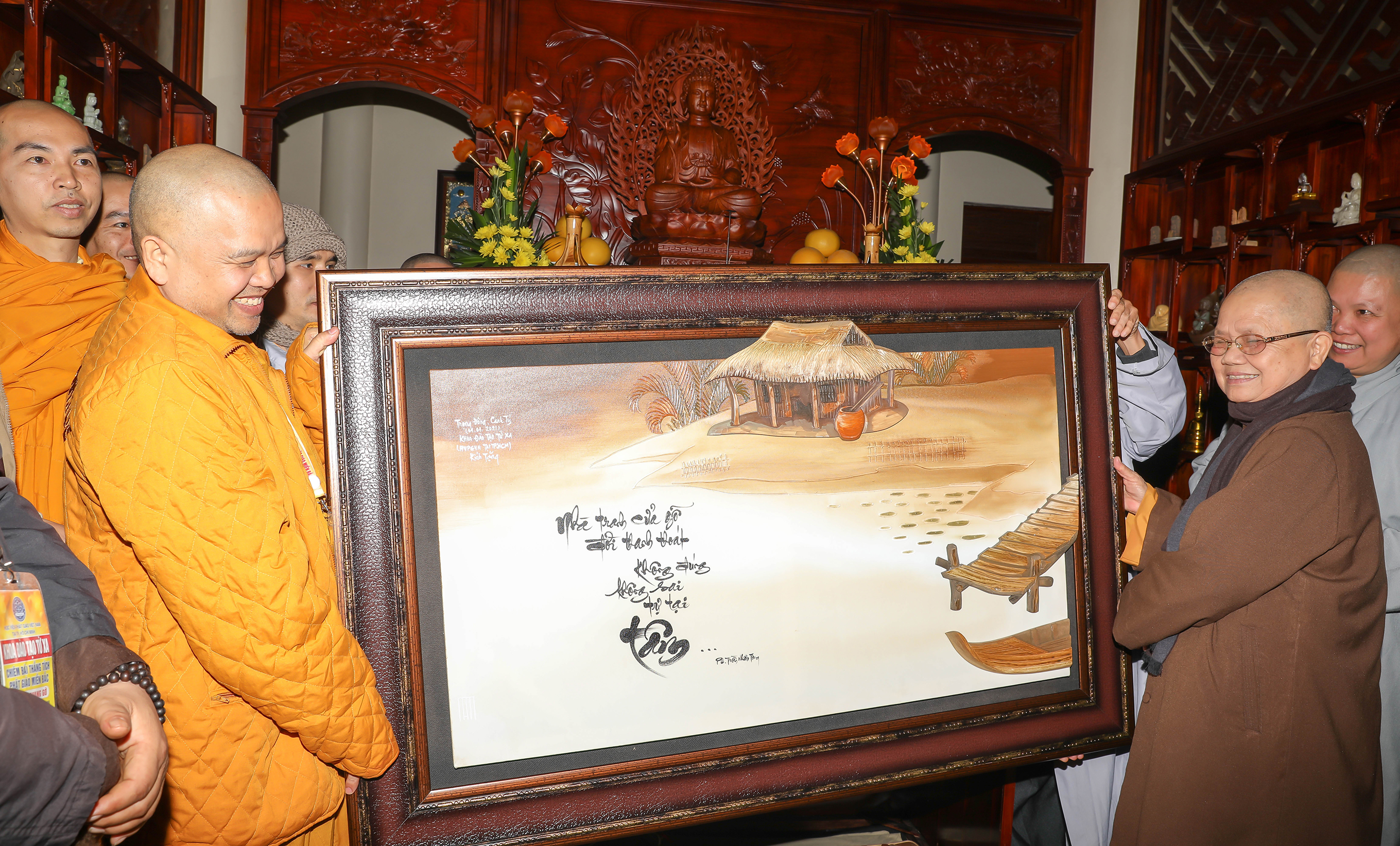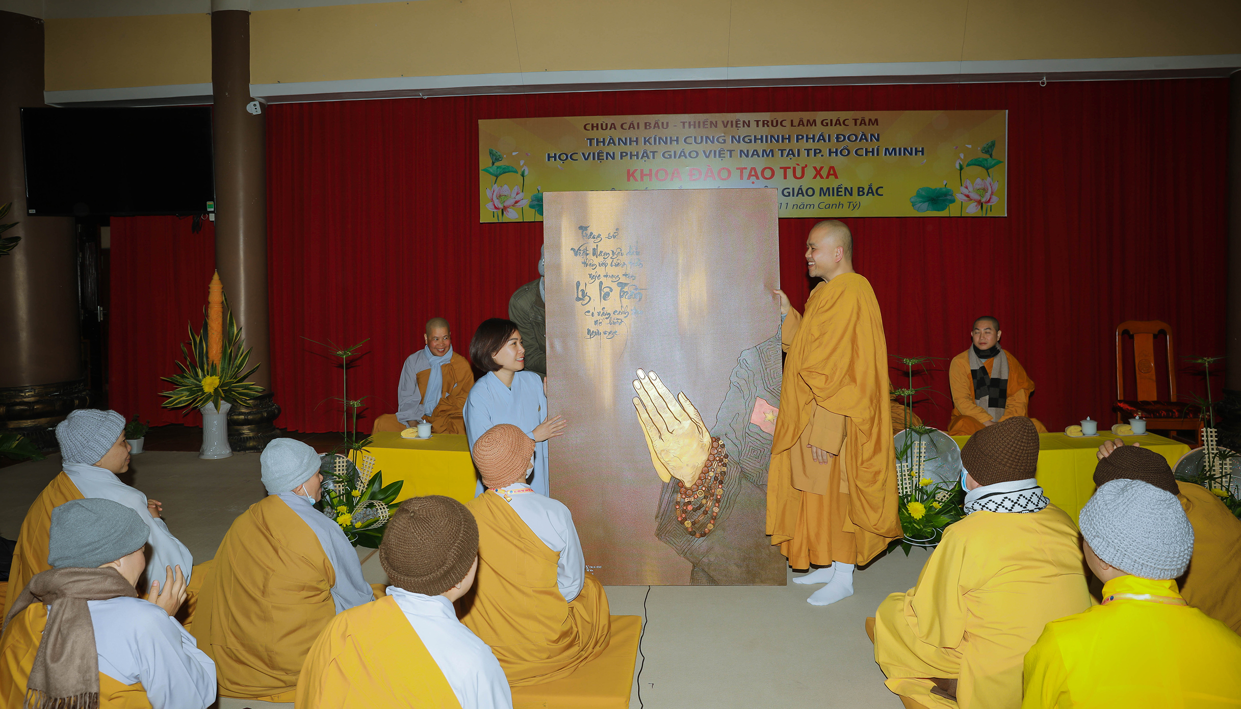 Trong buổi gặp gỡ, TT. Thích Giác Hoàng đã trao tặng động viên các cá nhân có nhiều đóng góp tích cực trong học tập và hộ pháp đắc lực cho chuyến hành trình về đất Phật lần này những phần quà kỷ niệm đầy ý nghĩa, đó là những bức tranh Phật có những thông điệp về giáo pháp của Đức Phật, nhằm động viên khích lệ các học viên tích cực tu học để được tăng trưởng về trí và đức.