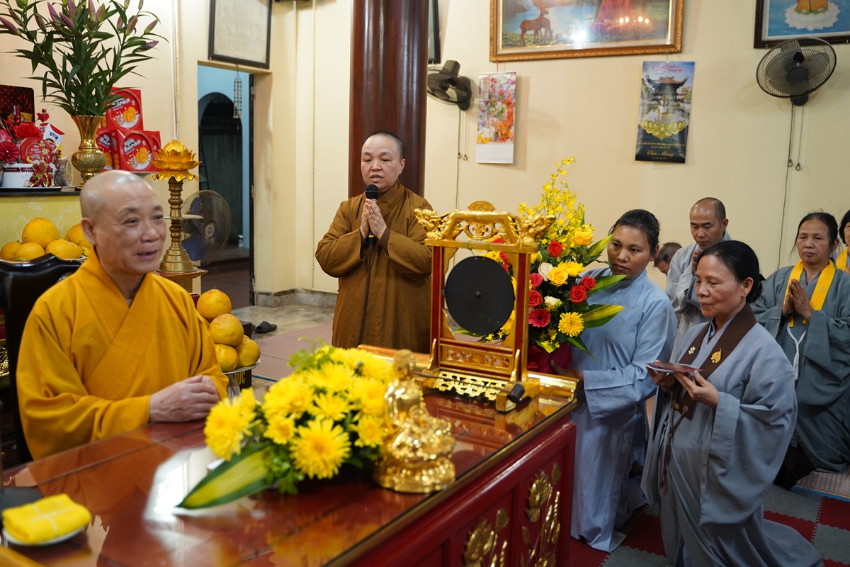 Hòa thượng Thích Bảo Nghiêm - Phó chủ tịch HĐTS, Trưởng Ban Hoằng pháp TƯ GHPGVNHòa thượng chia sẻ trong năm Quý Mão này, Thầy sẽ đi thăm và thuyết giảng cho tất cả các Đạo tràng Pháp Hoa trong miền Bắc, theo ý chỉ trao trách nhiệm hướng dẫn tu tập cho Phật tử các Đạo tràng của Đức Tôn sư Đệ tứ Pháp chủ GHPGVN. Thầy bày tỏ niềm hoan hỷ khi lần này trở về ngôi chùa Cát Linh này, nhìn thấy không chỉ có Phật tử bản tự, mà còn có Phật tử ở những ngôi chùa khác trên địa bàn thành phố Hà Nội cũng vân tập về nghe pháp. Điều đó thể hiện sự tinh tiến trong tu học, và tinh thần đoàn kết hòa hợp của các Phật tử Đạo tràng Pháp Hoa.