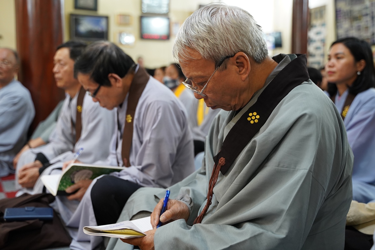 Qua đó, Hòa thượng nhấn mạnh "Trong đạo tràng, quý vị tu tập cùng nhau, phải hòa hợp với nhau và giữ thân khẩu ý thanh tịnh không nhiễm ô như nhau; luôn trao đổi học hỏi kinh nghiệm lẫn nhau, giữ tiếng nói chung, không được kích bác hay gây hiềm khích với nhau. Lục hòa là phép tu vô cùng thiêng liêng và quan trọng mà các Phật tử cần phải giữ khi đã là người con của Đức Phật. Hơn nữa, các vị được vinh hạnh là đệ tử trực tiếp của Đức Đệ tứ Pháp chủ, đang cùng chung lời nguyện quảng tuyên lưu bá Pháp Hoa Kinh, phải giữ được nề nếp hòa hợp, tu tập sao cho xứng với phúc duyên này, để từ đó chuyển hóa cuộc sống thật an lạc hạnh phúc trong ánh Đạo vàng".