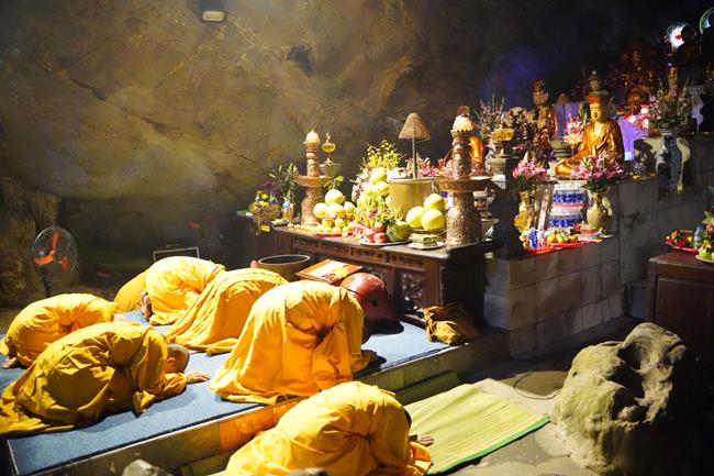 Giữa những tháng ngày nhân loại đang căng mình chống chọi với đại dịch Covid-19, bão lũ tàn phá khắp khúc ruột miền Trung, vạn loại dường như điêu linh giữa những thử thách quá đỗi khắc nghiệt của vũ trụ bao la, có một vị Thầy đã trở về động Hương Tích – Hà Nội, hành trì lạy ngũ bách danh với tấm lòng chí thành chí kính hướng về Đức Quán Thế Âm Bồ Tát, cầu nguyện thiên tai dịch bệnh không còn trên khắp thế gian, người người sống trong khúc ca an bình hạnh phúc.
