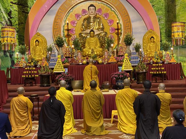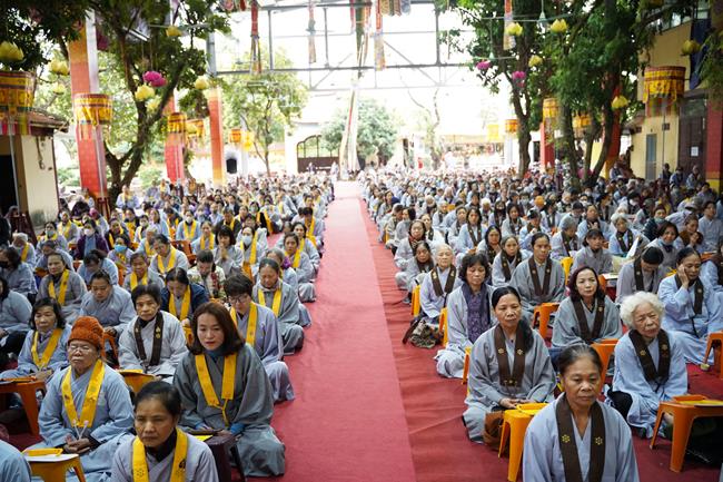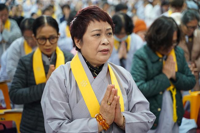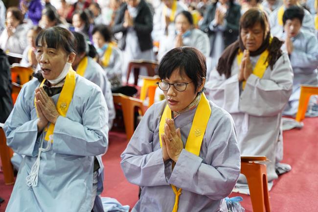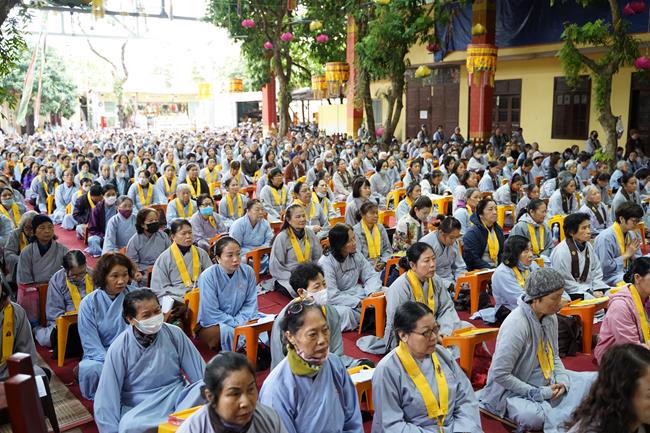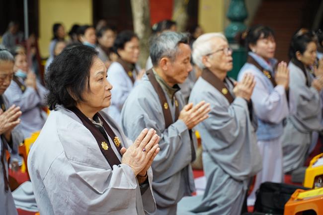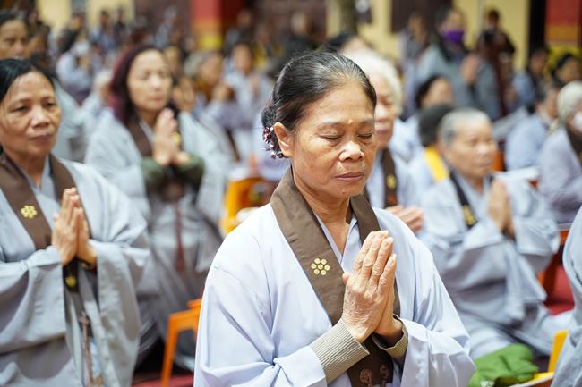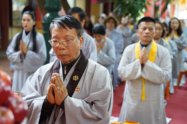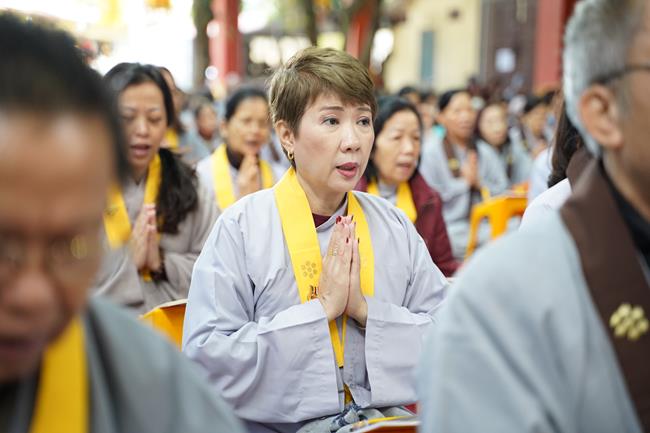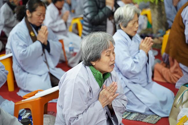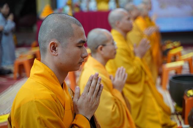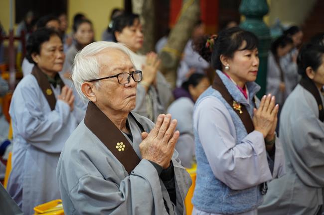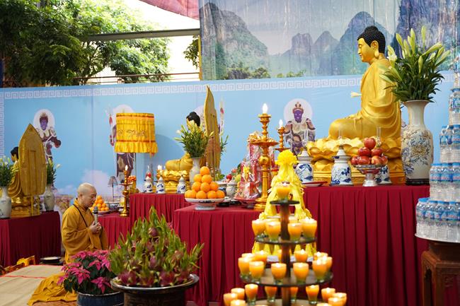 Sau đó, dưới sự chủ lễ của Hòa thượng trụ trì cùng chư Tôn đức Tăng, đại chúng tiếp tục trì tụng kinh Dược Sư trong niềm chí thành chí kính của người con Phật, cầu nguyện Phật pháp trường tồn, dịch bệnh tiêu tan, thế giới hòa bình, nhân dân ấm no hạnh phúc.