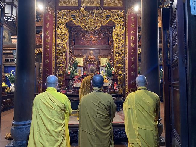 Tối ngày 28/11, Hòa thượng trụ trì cùng chư Tôn đức Tăng và đại diện Phật tử đạo tràng bản tự đã làm lễ niêm hương bạch Phật, yết Tổ và thực hiện nghi thức sái tịnh đàn để khai mạc Pháp hội Dược Sư PL.2564 - DL.2020.