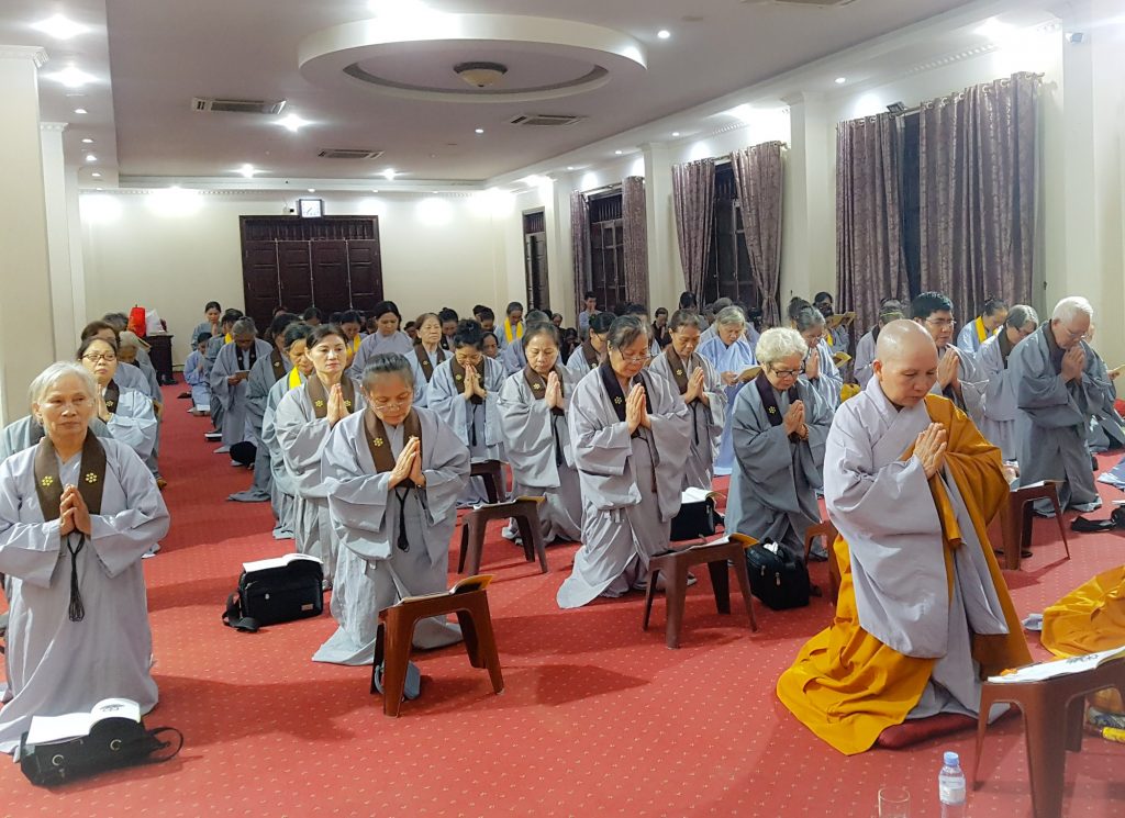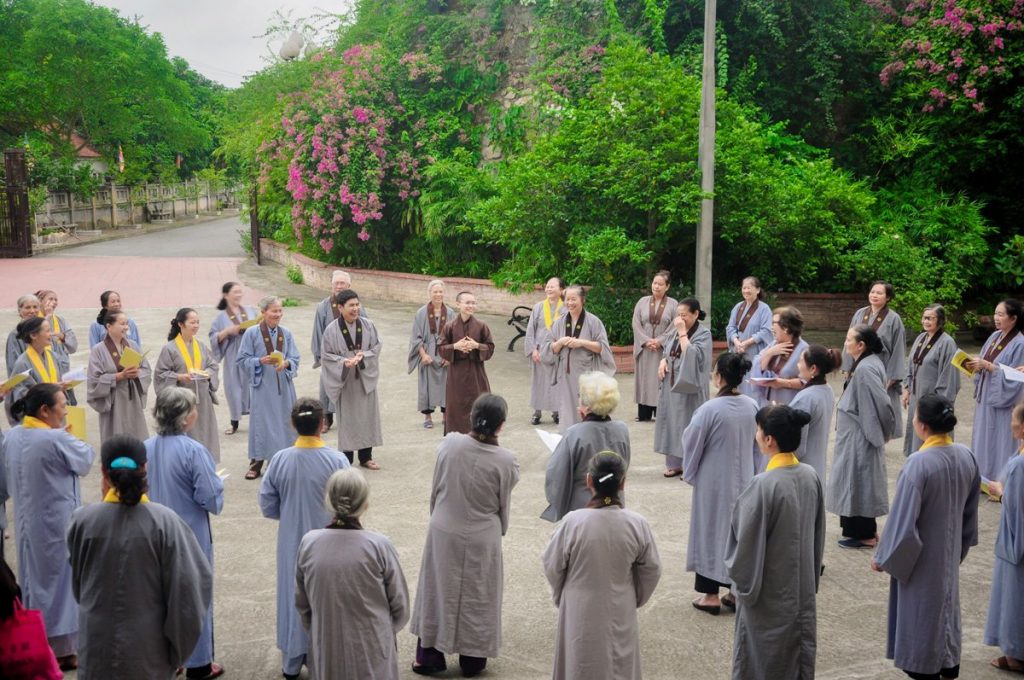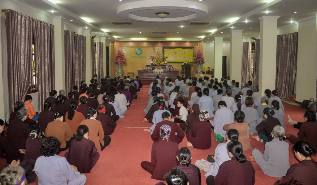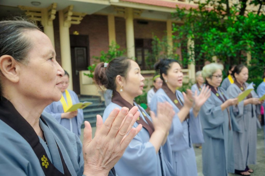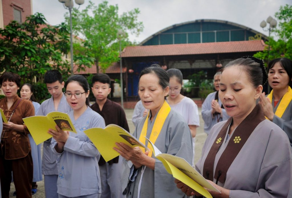 Chiều và tối thứ 7, đại chúng lễ sám hối hồng danh chư Phật và sám hối 6 căn theo nghi thức do vua Trần Thái Tông đời Trần đã soạn. Ngày chủ nhật, đại chúng thực tập các sinh hoạt như thường lệ: thiền tọa (thực tập quán chiếu lý vô thường), thiền hành, thiền ca, ăn cơm chính niệm, niệm Phật… dưới sự hướng dẫn của sư cô Thích Nữ Mai Anh.