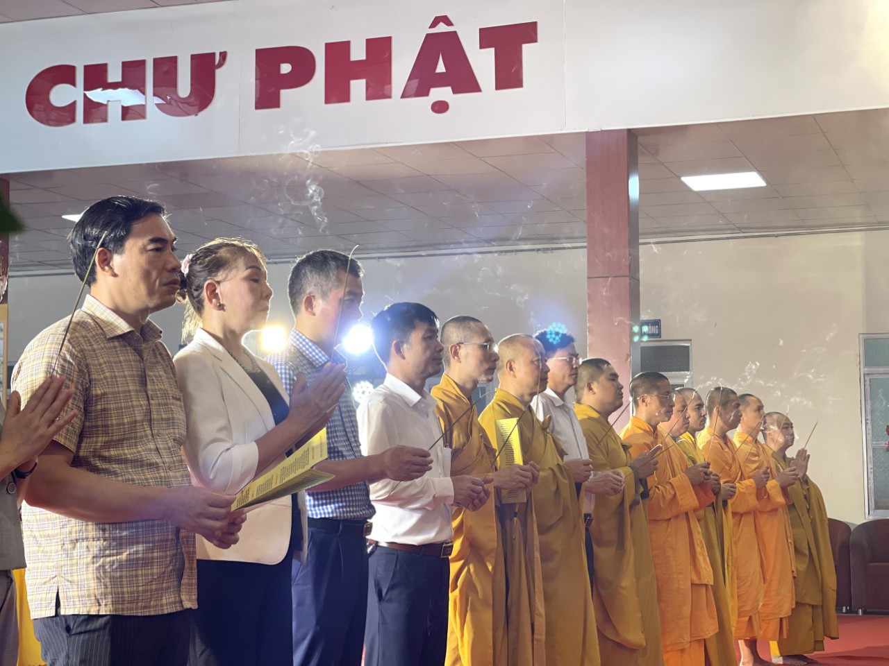 Quang lâm chứng minh và tham dự đại lễ có TT. Thích Thanh Huân, UVTK HĐTS, Phó Trưởng Ban Thường trực Ban Thông tin truyền thông Trung ương, Phó trưởng Ban Thường trực Ban Trị sự GHPGVN tỉnh; ĐĐ. Thích Minh Nhật, ĐĐ. Thích Đạo Ngộ, đồng Phó trưởng Ban Trị sự; cùng chư Tôn đức Tăng Ni trong Ban Trị sự GHPGVN tỉnh và quý Phật tử gần xa về tham dự.