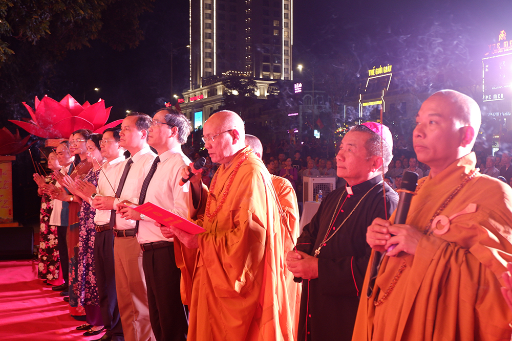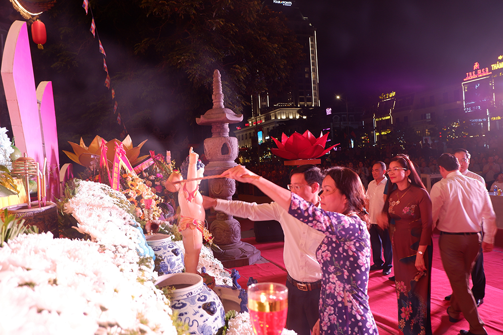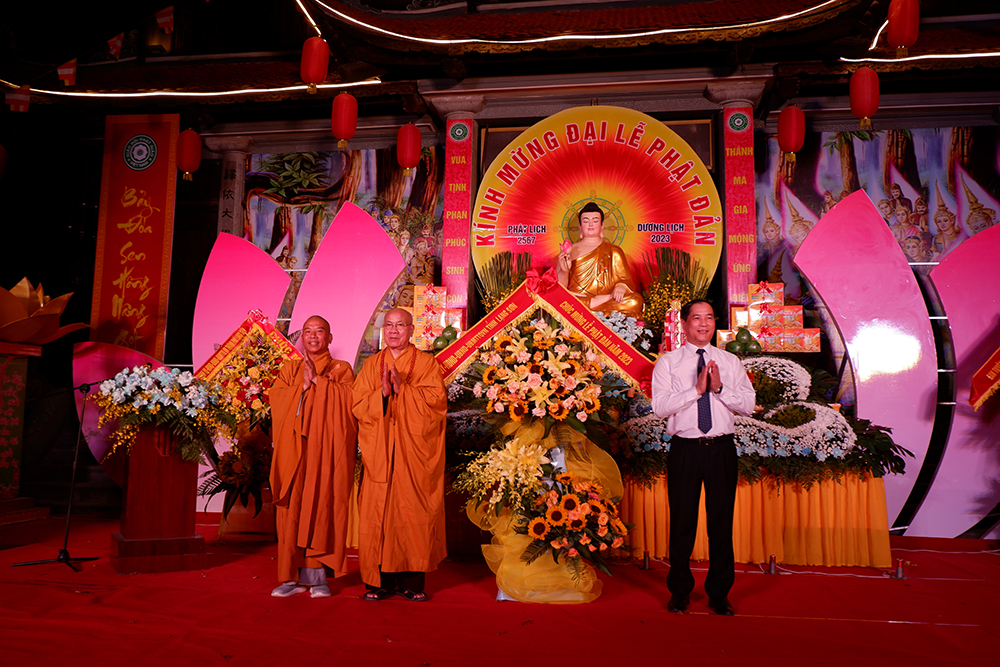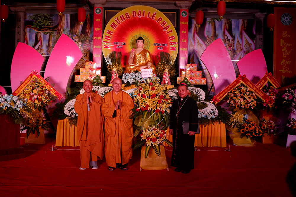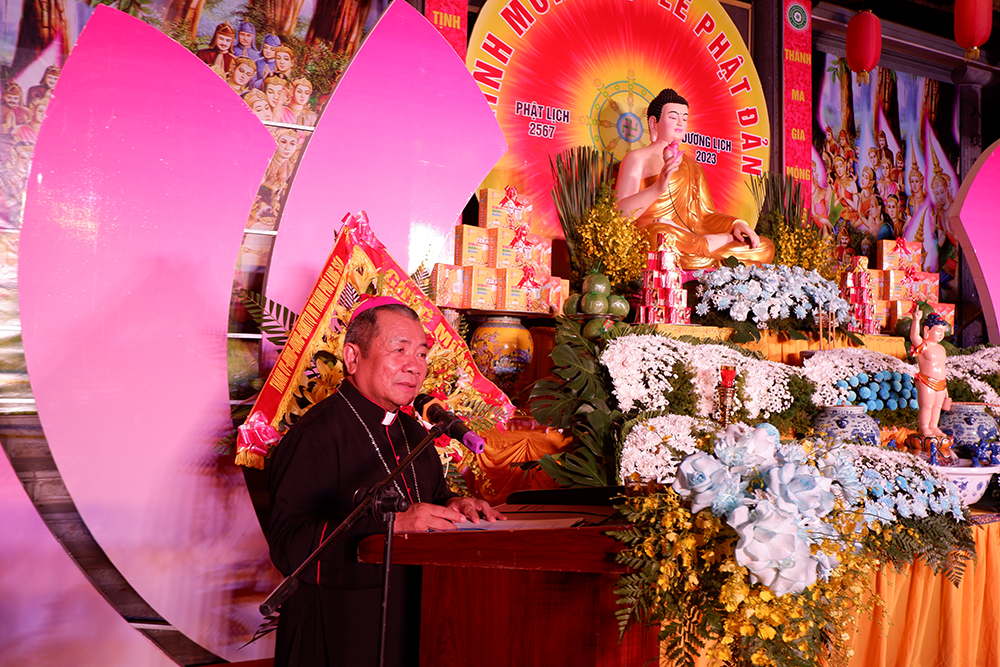 Tiếp đó, Đại đức Thích Bản Chung, Phó Trưởng ban Thường trực Ban Trị sự tuyên đọc Ý nghĩa Phật đản PL.2567; Đức Giám mục Giuse Châu Ngọc Tri, Giám mục giáo phận Lạng Sơn - Cao Bằng tuyên đọc sứ điệp gửi Quý Phật tử nhân dịp Đại lễ vesak 2023 của Tòa thánh Vatincan.