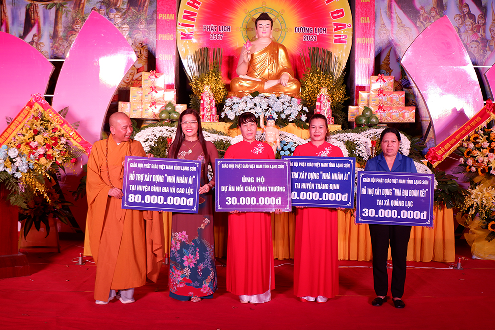 Tại đại lễ, Ban Trị sự GHPGVN tỉnh Lạng Sơn trao tặng dự án "Nồi cháo tình thương" số tiền 30 triệu đồng để nấu cháo cho các bệnh nhân nghèo tại bệnh viện đa khoa tỉnh Lạng Sơn; Ban Trị sự phối hợp cùng Hội chữ thập đỏ tỉnh Lạng Sơn hỗ trợ xây dựng "Nhà chữ thập đỏ" số tiền 80 triệu đồng; phối hợp cùng Hội chữ thập đỏ huyện Tràng Định xây dựng "Nhà nhân ái" số tiền 60 triệu đồng; phối hợp với Ủy ban Mặt trận tổ quốc Việt Nam thành phố Lạng Sơn xây dựng "Nhà đại đoàn kết" tại xã Quảng Lạc số tiền 30 triệu đồng.
