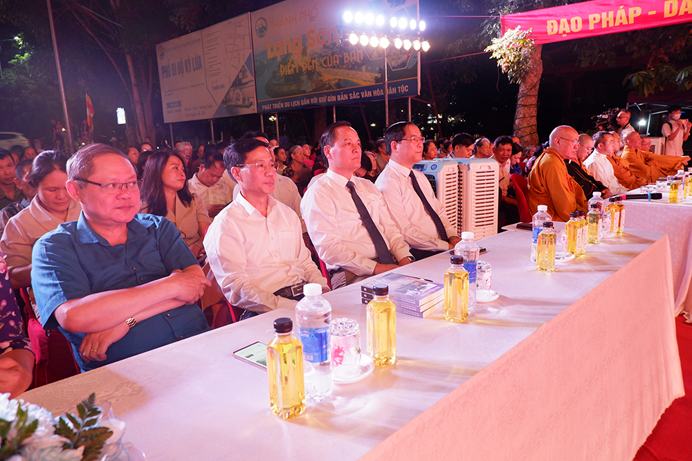 Đại diện chính quyền có ông Dương Xuân Huyên, Ủy viên Ban Thường vụ Tỉnh ủy, Phó Chủ tịch Thường trực UBND tỉnh Lạng Sơn; ông Phùng Quang Hội, Ủy viên Ban Thường vụ Tỉnh ủy, Trưởng ban Tuyên giáo Tỉnh ủy; ông Lương Tiến Trình, Phó Ban Dân vận Tỉnh ủy; ông Nguyễn Thành Công, Phó bí thư Tỉnh đoàn; bà Hoàng Thị Huyền, Ủy viên Ban Thường vụ Thành ủy, Trưởng ban Dân vận Thành ủy, Chủ tịch UBMTTQVN TP.Lạng Sơn; bà Đặng Thị Kiều Vân, Bí thư Huyện ủy, Chủ tịch HĐND huyện Tràng Định; bà Nguyễn Thị Hồng Vân, Phó Chủ tịch UBND TP.Lạng Sơn; cùng lãnh đạo đại diện Tỉnh ủy - HĐND - UBND - UB MTTQVN tỉnh Lạng Sơn, TP.Lạng Sơn, huyện Tràng Định; tín đồ Phật tử thập phương và địa phương đồng tham dự.