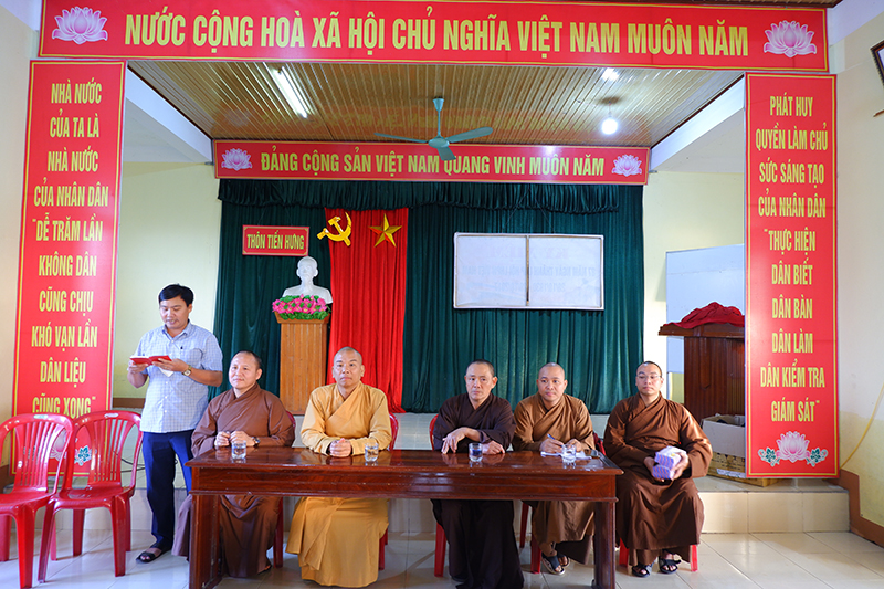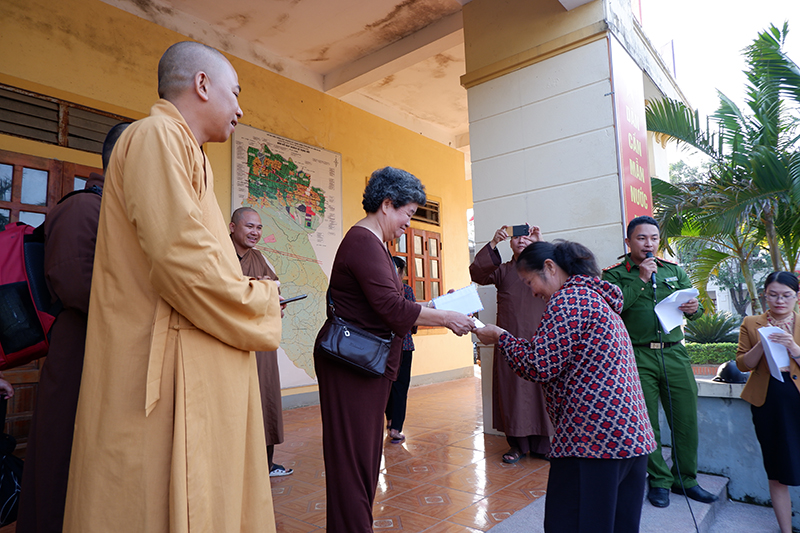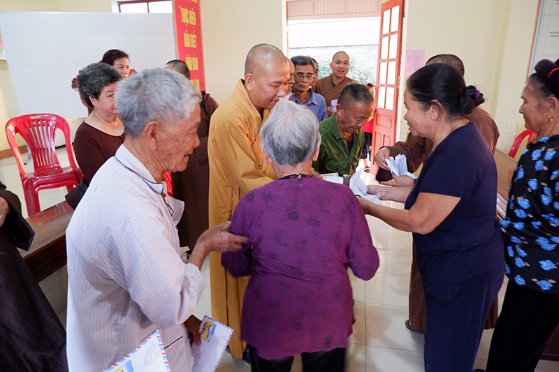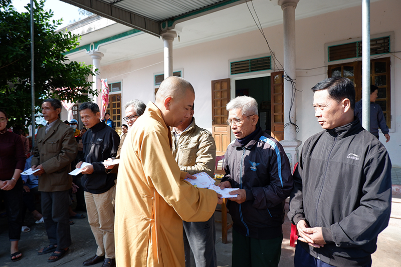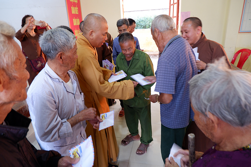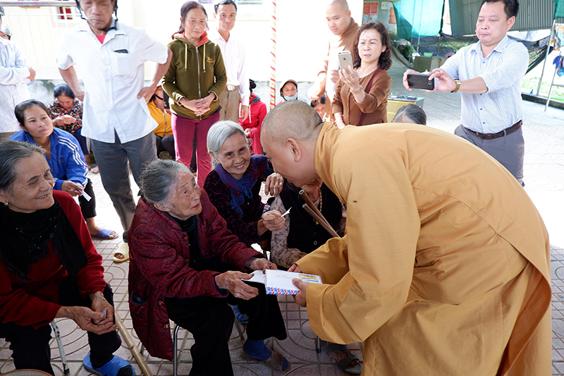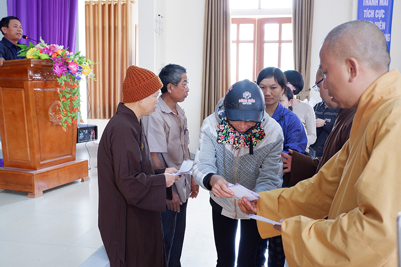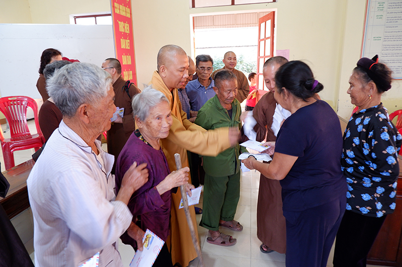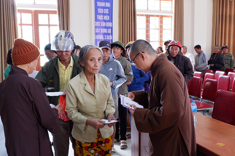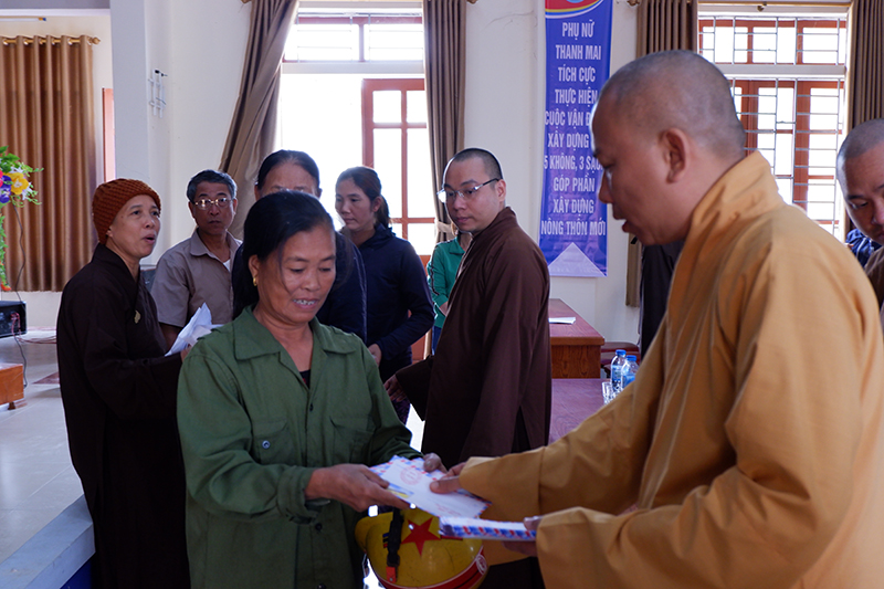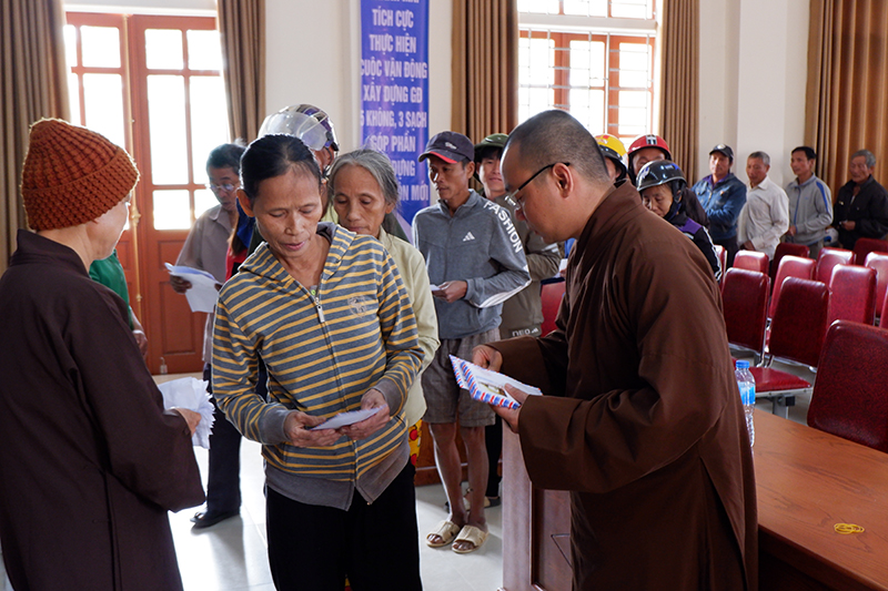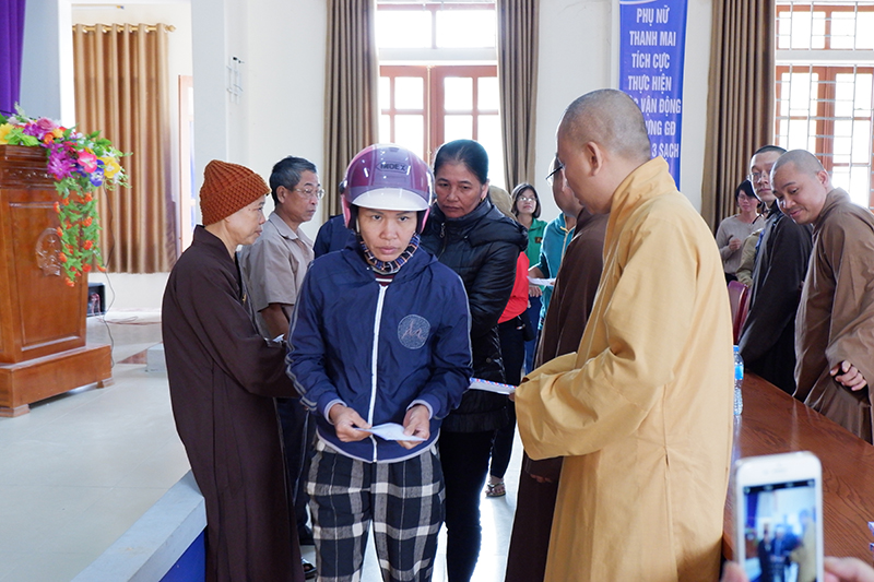 Tại tỉnh Hà Tĩnh, Ban Trị sự GHPGVN tỉnh Lạng Sơn phối hợp với Ban Từ thiện xã hội Ban Trị sự GHPGVN tỉnh Hà Tĩnh đã đến thăm và tặng quà các gia đình bị ảnh hưởng bão lũ tại xã Cẩm Quan; xã Thạch Hưng - huyện Cẩm Xuyên - tỉnh Hà Tĩnh.