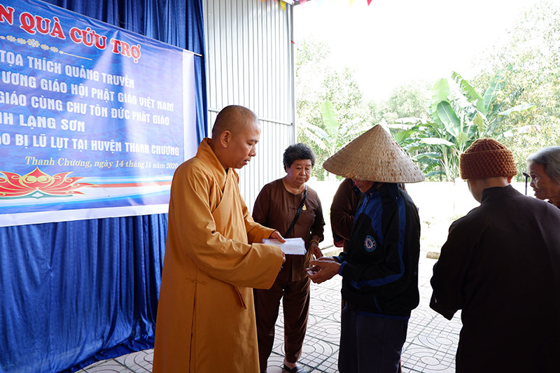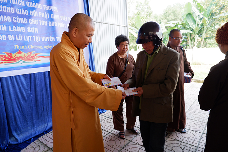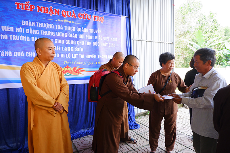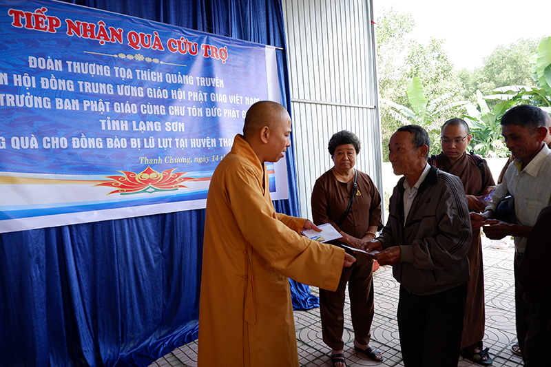 Trước đó, Ban Trị sự GHPGVN tỉnh Lạng Sơn đã trao 200 suất quà trị giá 100 triệu đồng, thông qua Ban Tôn giáo - Sở Nội vụ, BTS Phật giáo tỉnh Quảng Ngãi tặng tới các bà con nhân dân bị ảnh hưởng do bão lũ vừa qua.