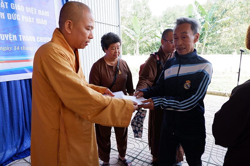 Tại tỉnh Nghệ An, Ban Trị sự GHPGVN tỉnh Lạng Sơn phối hợp với Ban từ thiện xã hội Ban Trị sự GHPGVN tỉnh Nghệ An đã đến thăm và tặng quà các gia đình bị ảnh hưởng bão lũ của xã Thanh Tùng, xã Thanh Mai, Hội người mù huyện Thanh Chương - tỉnh Nghệ An .