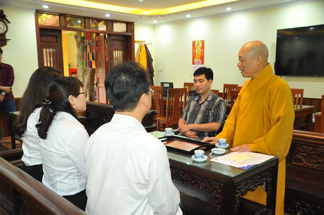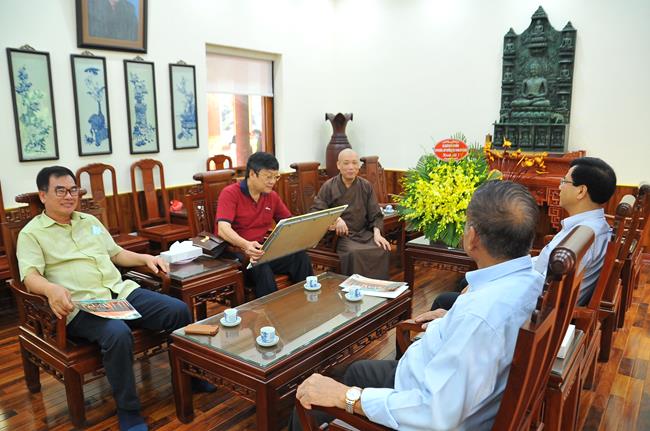 Thân tình đón tiếp các phái đoàn có Hòa thượng Thích Bảo Nghiêm – Phó chủ tịch HĐTS, Trưởng Ban Hoằng pháp TƯ GHPGVN, Trưởng BTS GHPGVN TP. Hà Nội, Trụ trì chùa Bằng (Linh Tiên Tự).